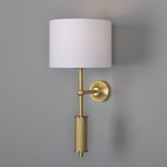 Bangor Modern Brass Wall Light with Drum Fabric Shade