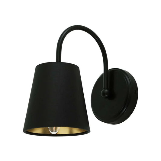 Kangos Polished Brass and Black Pillar Wall Light with Fabric Shade