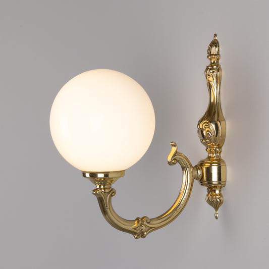 Ben Ornate Brass Wall Light with Opal Glass Globe