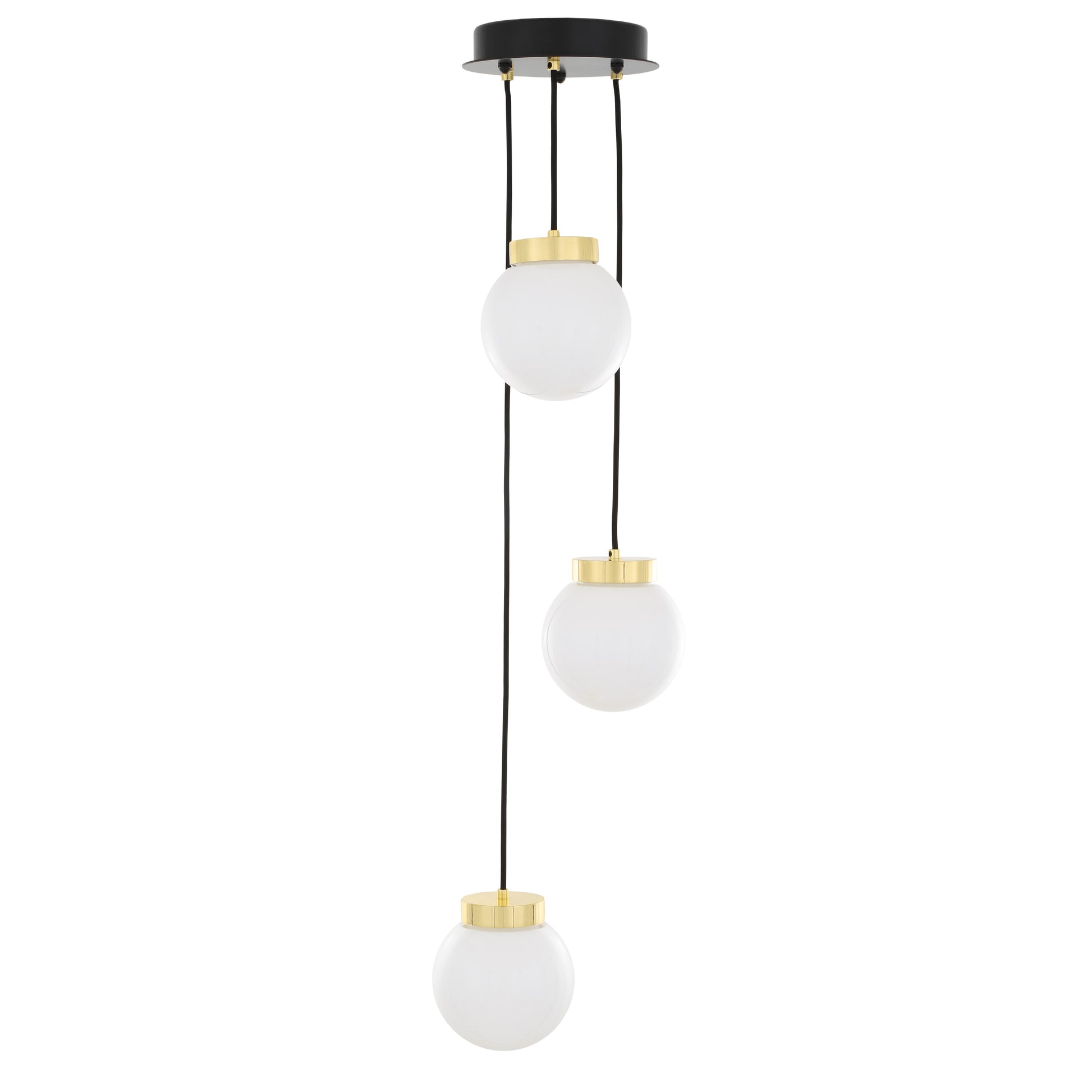 A snazzy selection for upscale ambiences with a hip artistic edge, the Agusta chandelier by Mullan Lighting pairs well with palatial spaces such as brick lofts and downtown studios. Suspended from a powder-coated black ceiling rose, three glass light globes together produce a gentle glow that bounces off the brassy finish of its metal fittings.