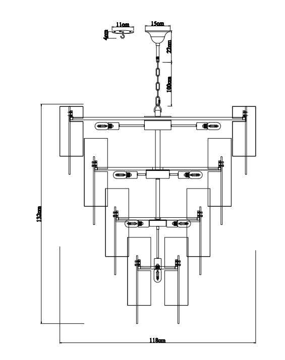 Each glass plate is carefully mounted onto a brass-finished metal frame, forming a layered composition that delivers both texture and refined elegance. The result is a chandelier that feels timeless yet contemporary, making it equally suited to classic interiors and modern luxury settings.
