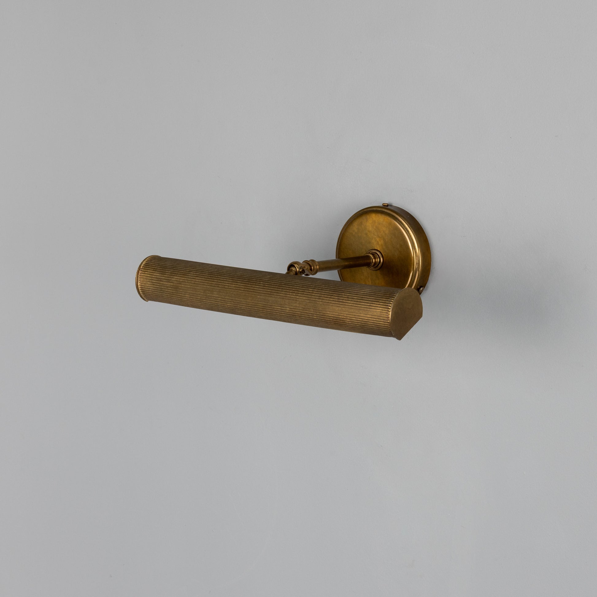 Designed to complement both classic and contemporary interiors, the Bilbury picture light by Mullan Lighting is crafted from solid brass with meticulous reeded detailing across its cylindrical shade.