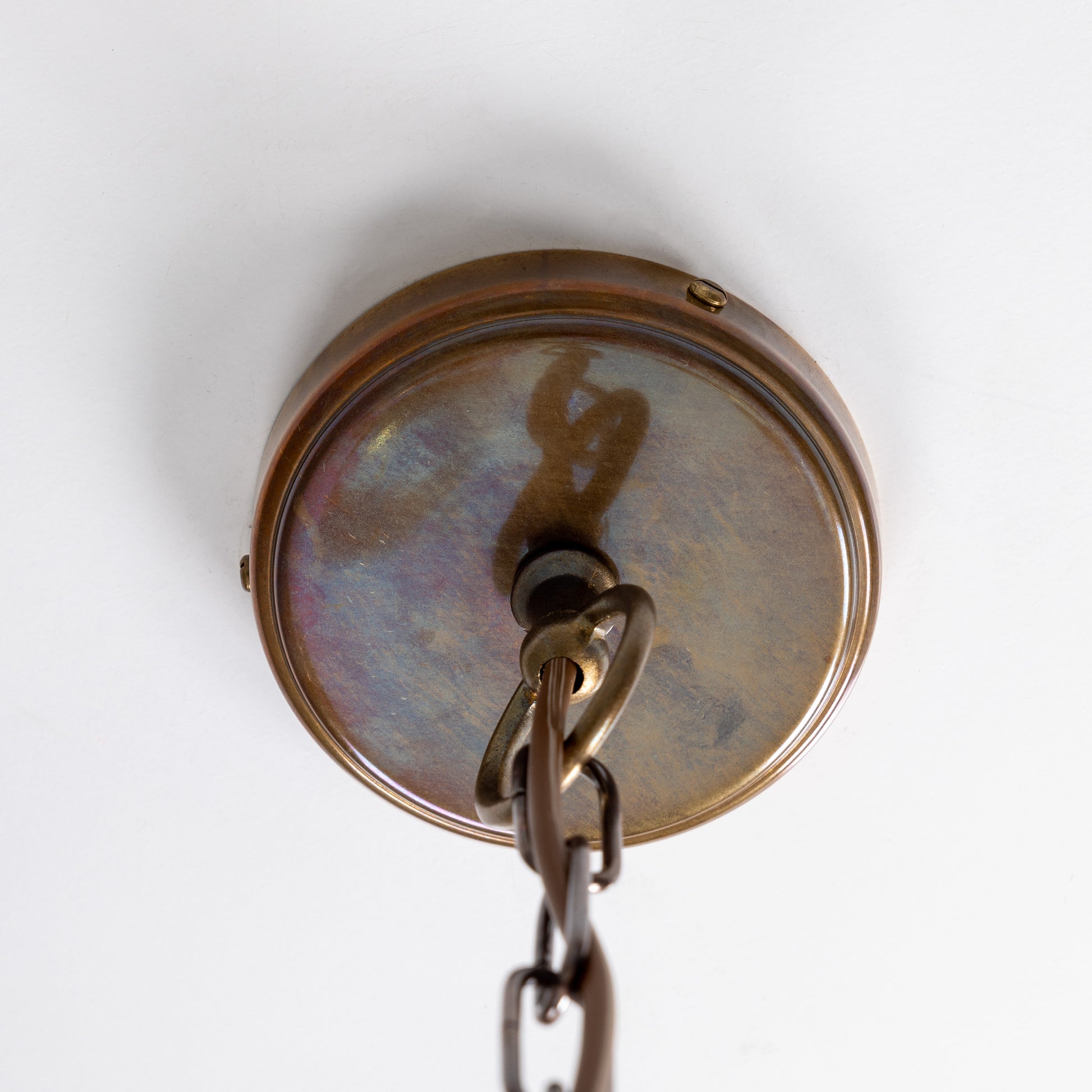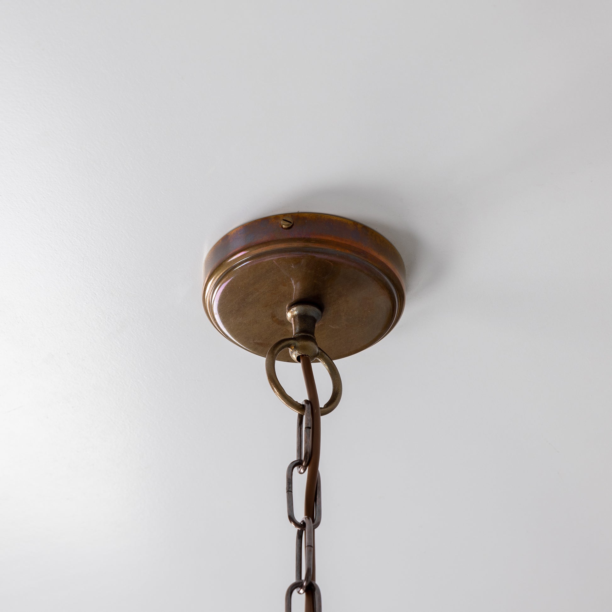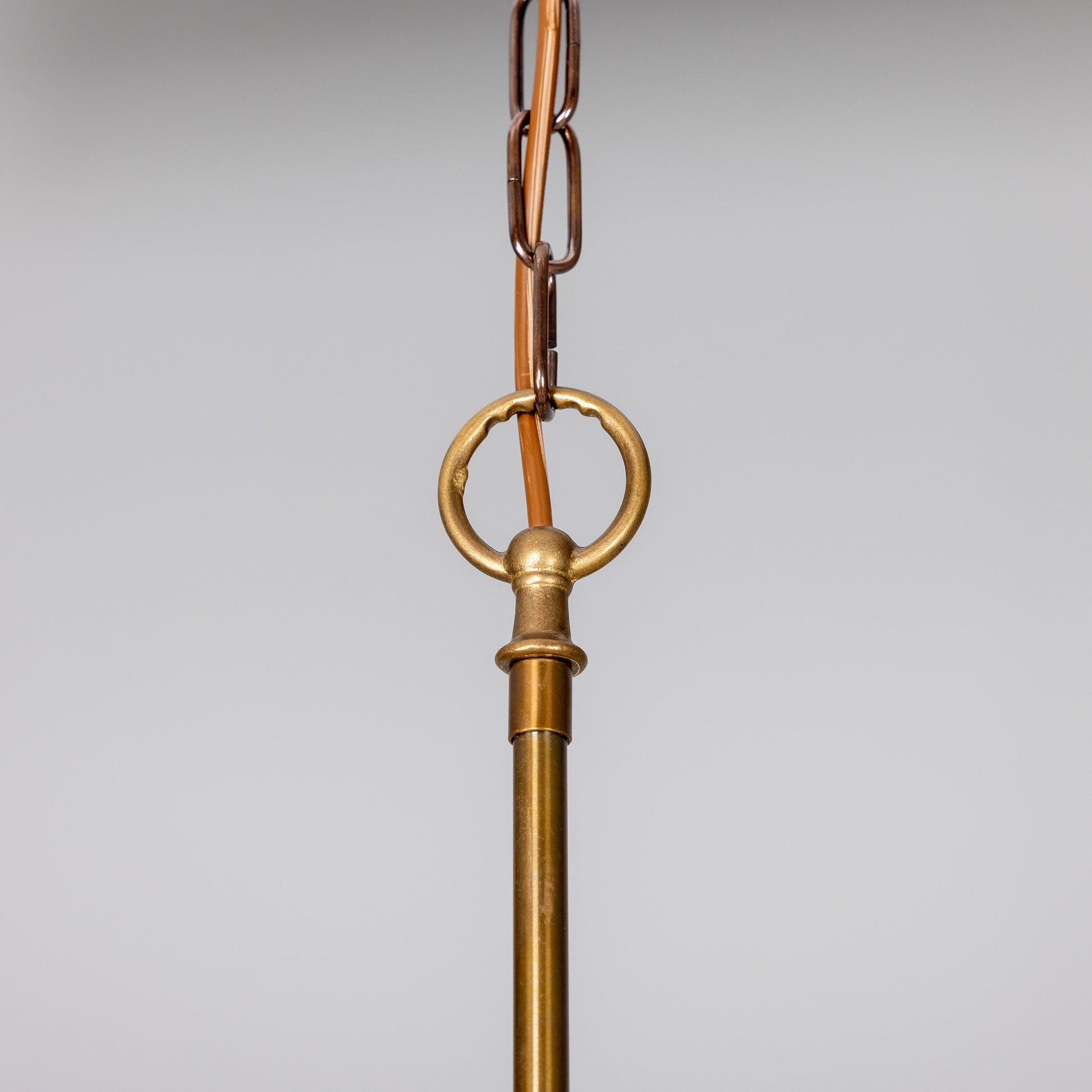 The California chandelier is suspended from brass lighting chain attached to the central brass tube using a closed hook.