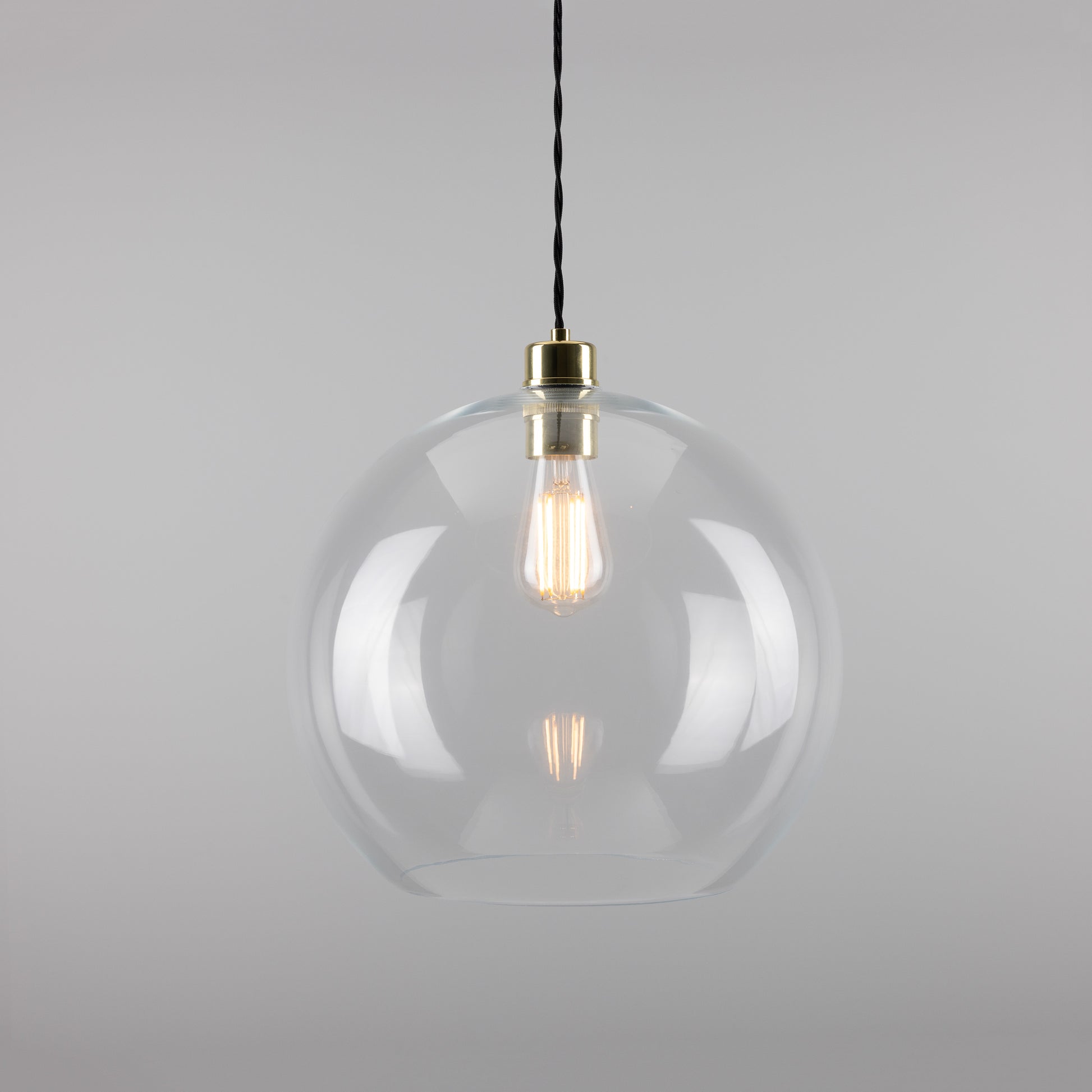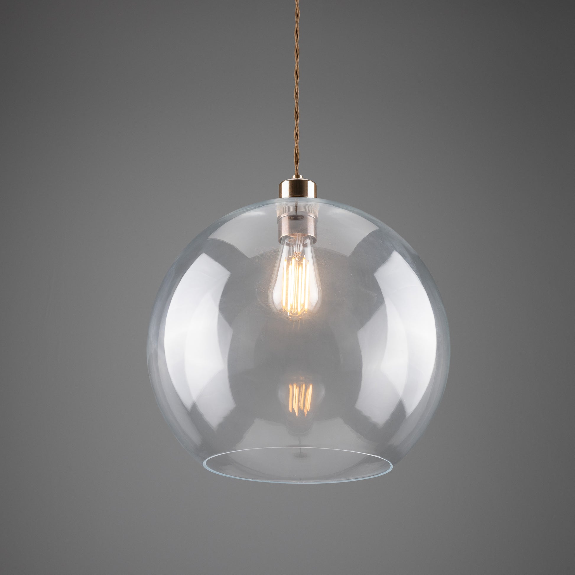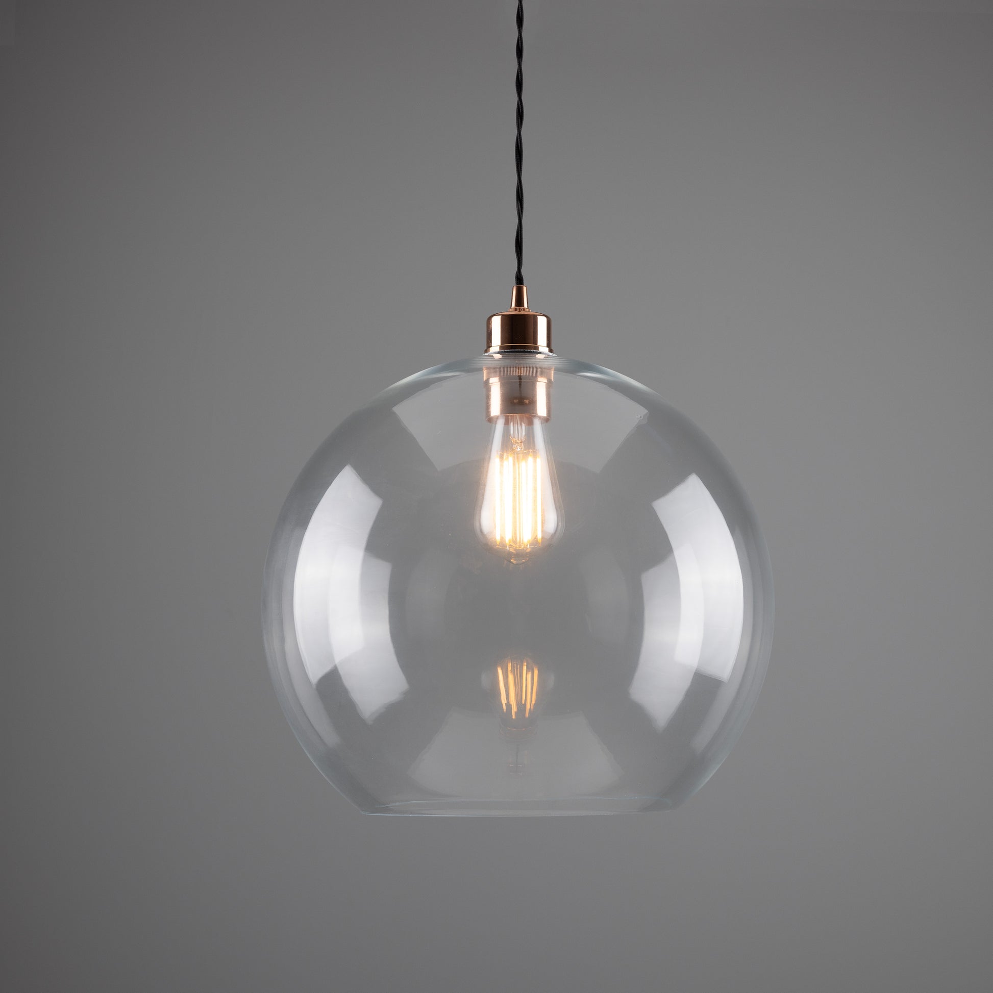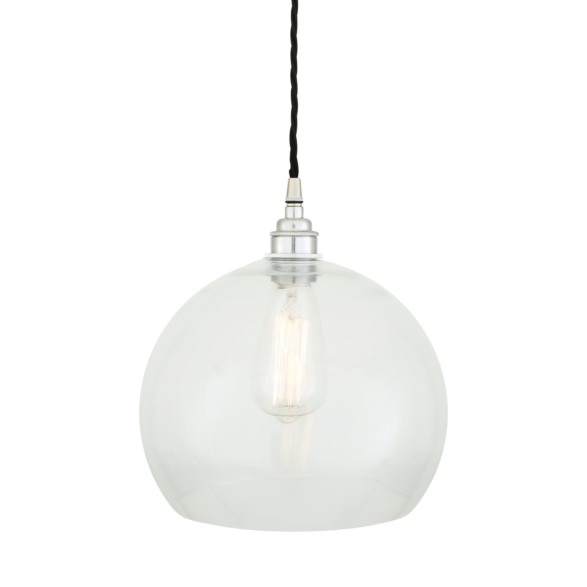 Suitable for any minimalist or industrial interiors, this glass pendant light looks fantastic when lit with an Edison squirrel cage bulb for a soft lighting. Bulbs are sold separately.