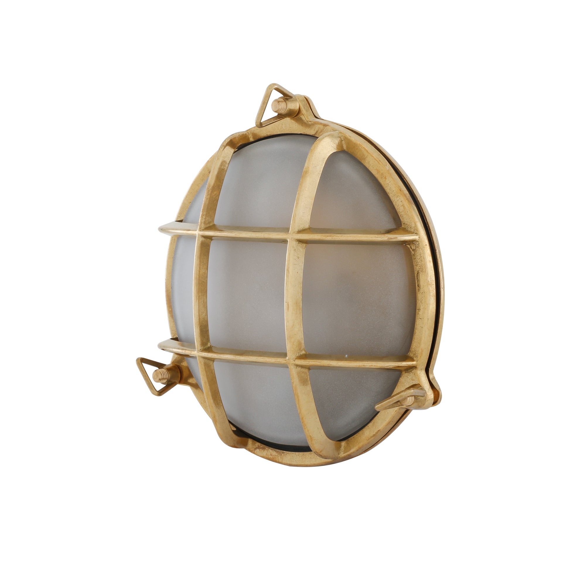 Made from solid brass, its protective cage surrounds a choice of frosted or clear glass, providing either a warm glow or bright light. The gently curved frame and secure latches reflect its maritime roots, ensuring it looks great and lasts over time. With an IP54 rating, this fixture is ideal for both indoor and outdoor use, blending character with practicality.