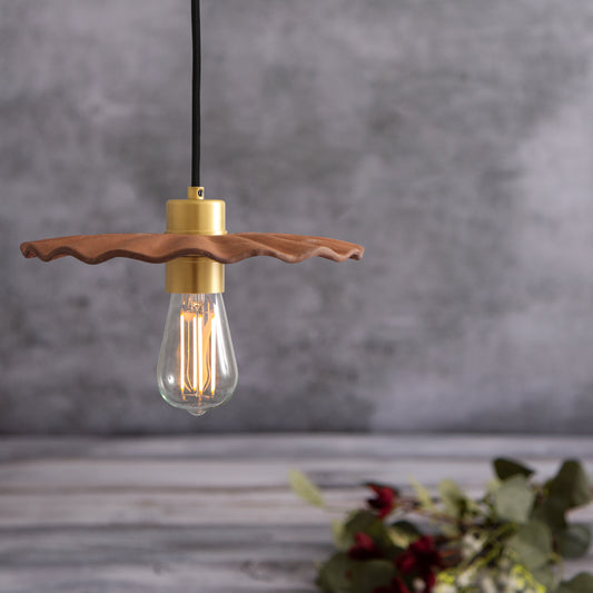 The Kapok ceramic ceiling light design showcases an exposed bulb, adding a rustic charm to this lighting fixture. Its artful conception can be appreciated in both modern and more traditional settings.