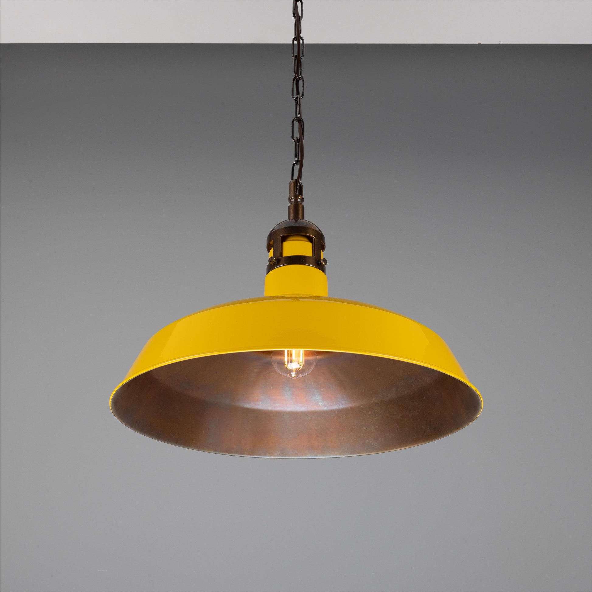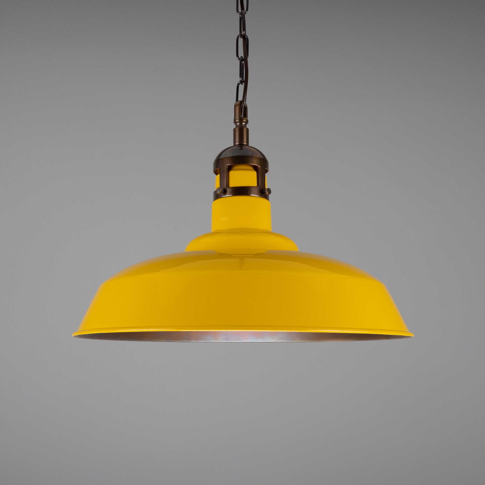 The Matlock vintage factory pendant light by Mullan Lighting is a modern twist on a traditional, industrial design. While the Matlock's silhouette is a classic shape, its overall appearance is modernist, adding a subtle statement to interiors.