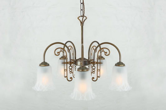 Medan Traditional Brass / Glass Chandelier, Five-Arm