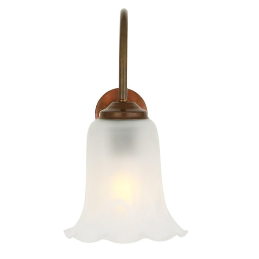 Medan Two-Arm Ornate Brass Wall Light with Etched Glass Shades