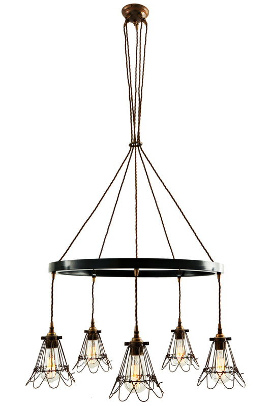 Suitable for any modern or industrial interiors, this contemporary chandelier looks great when lit with Edison-style filament bulbs to enhance an industrial atmosphere.