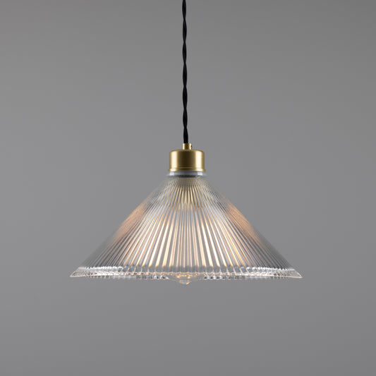 The simple and formal design is ideal for commercial use, including restaurant and pub lighting. Suitable for any minimalist or industrial style setting, the Holophane glass, when lit, creates a warm glow when teamed with a warm bulb.