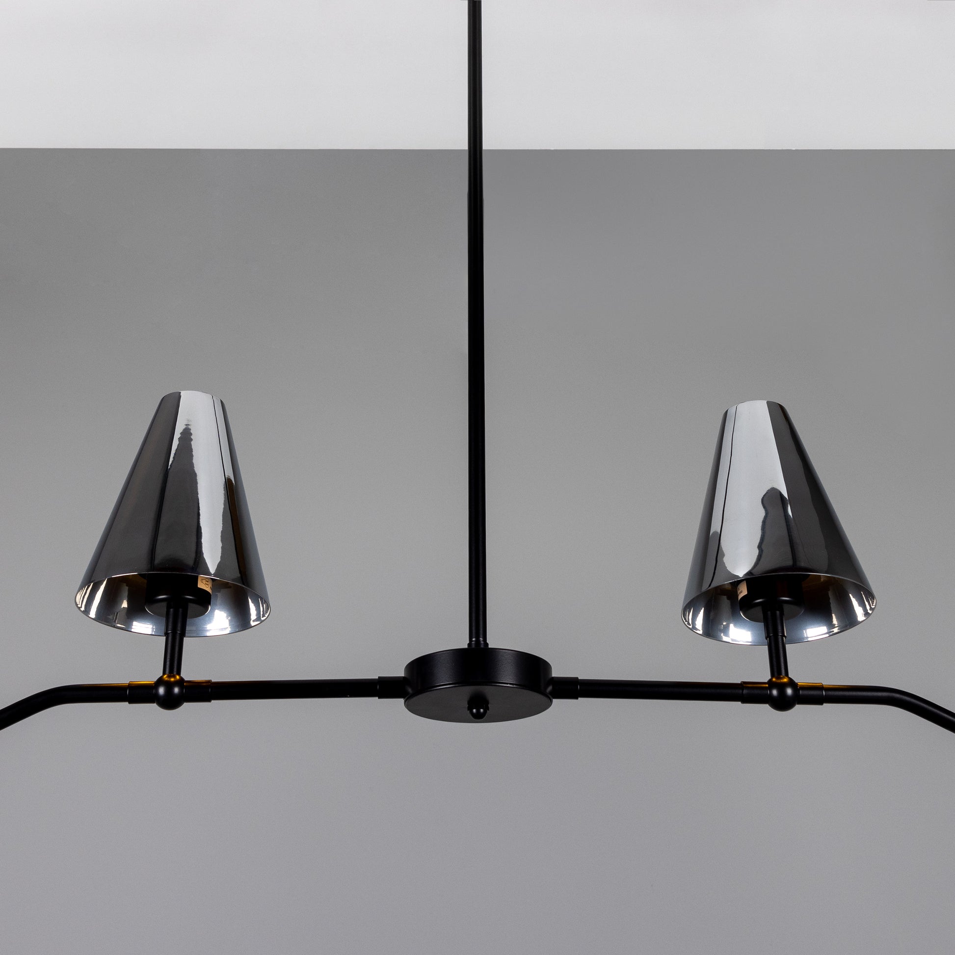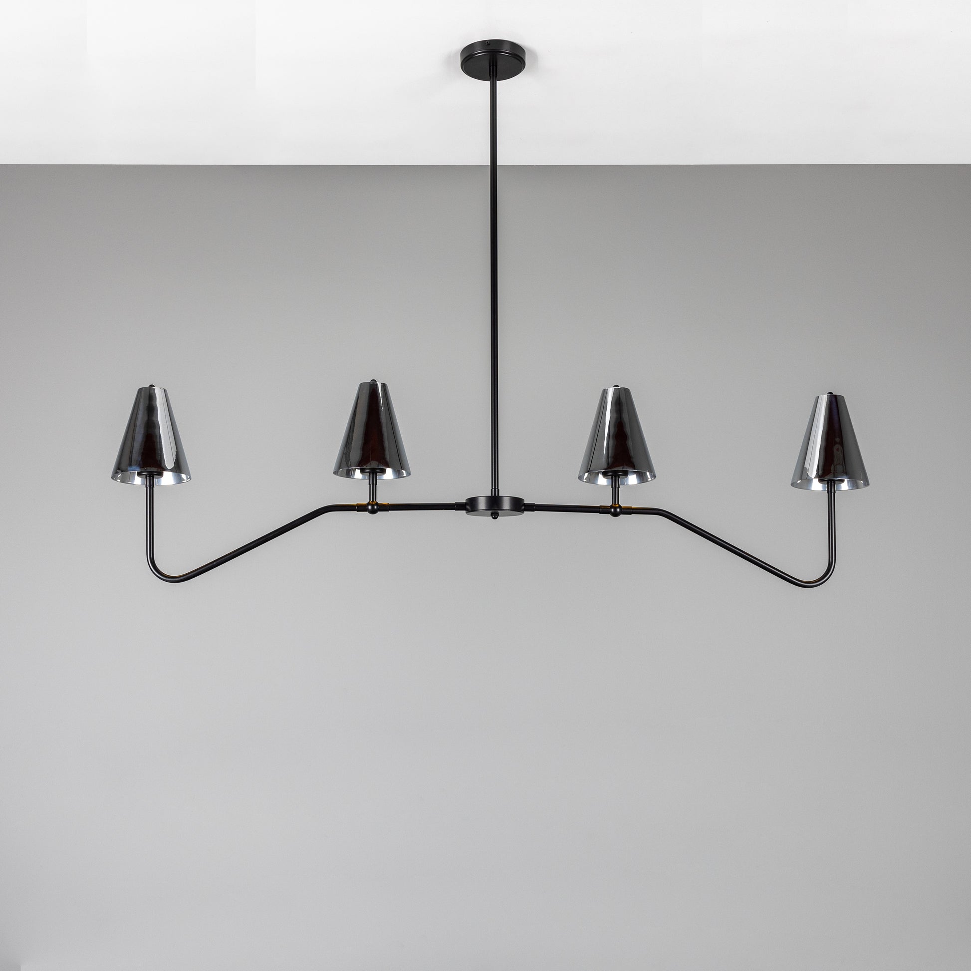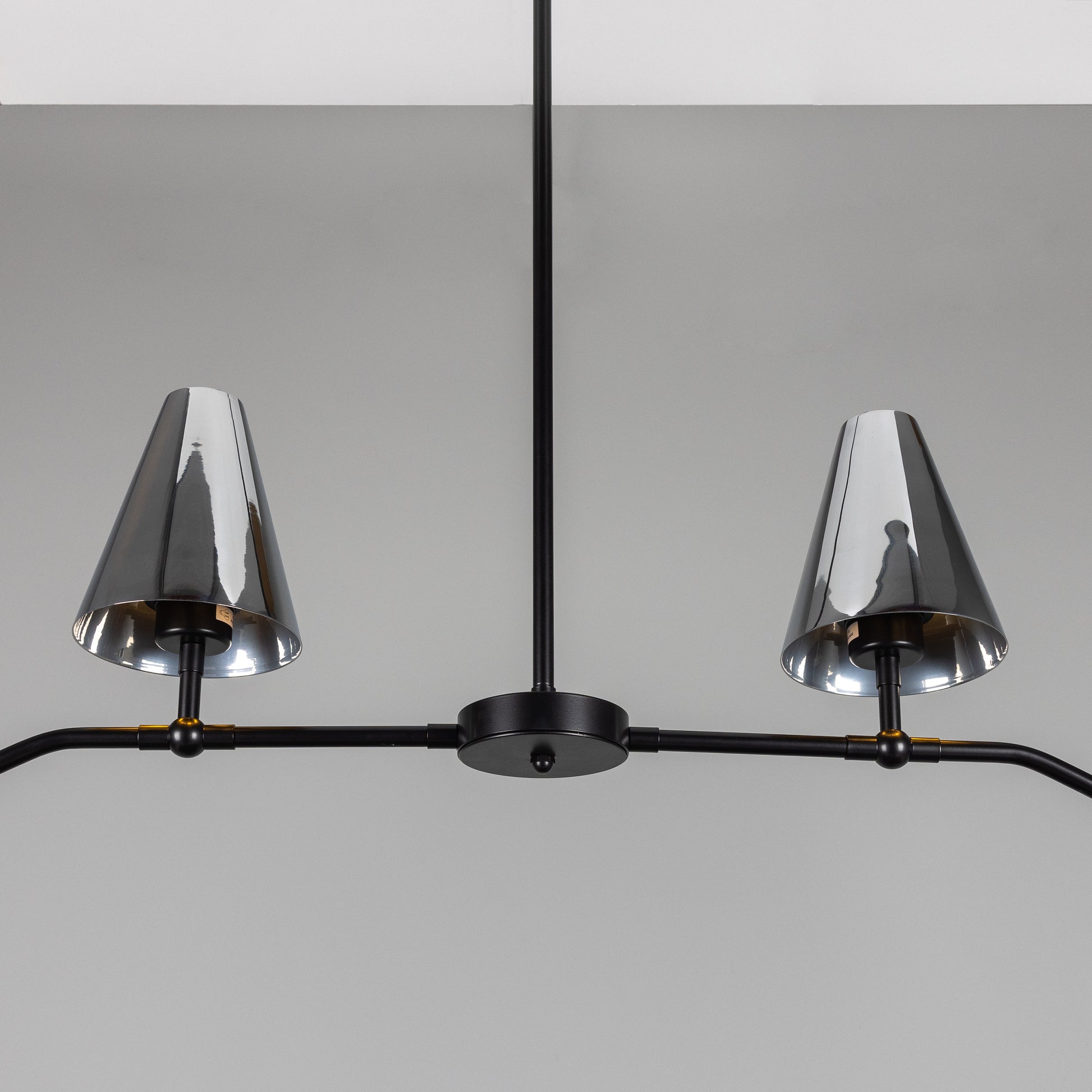 Modern geometric lines give this unique island bar chandelier a refined elegance, with an impressive yet slim profile.