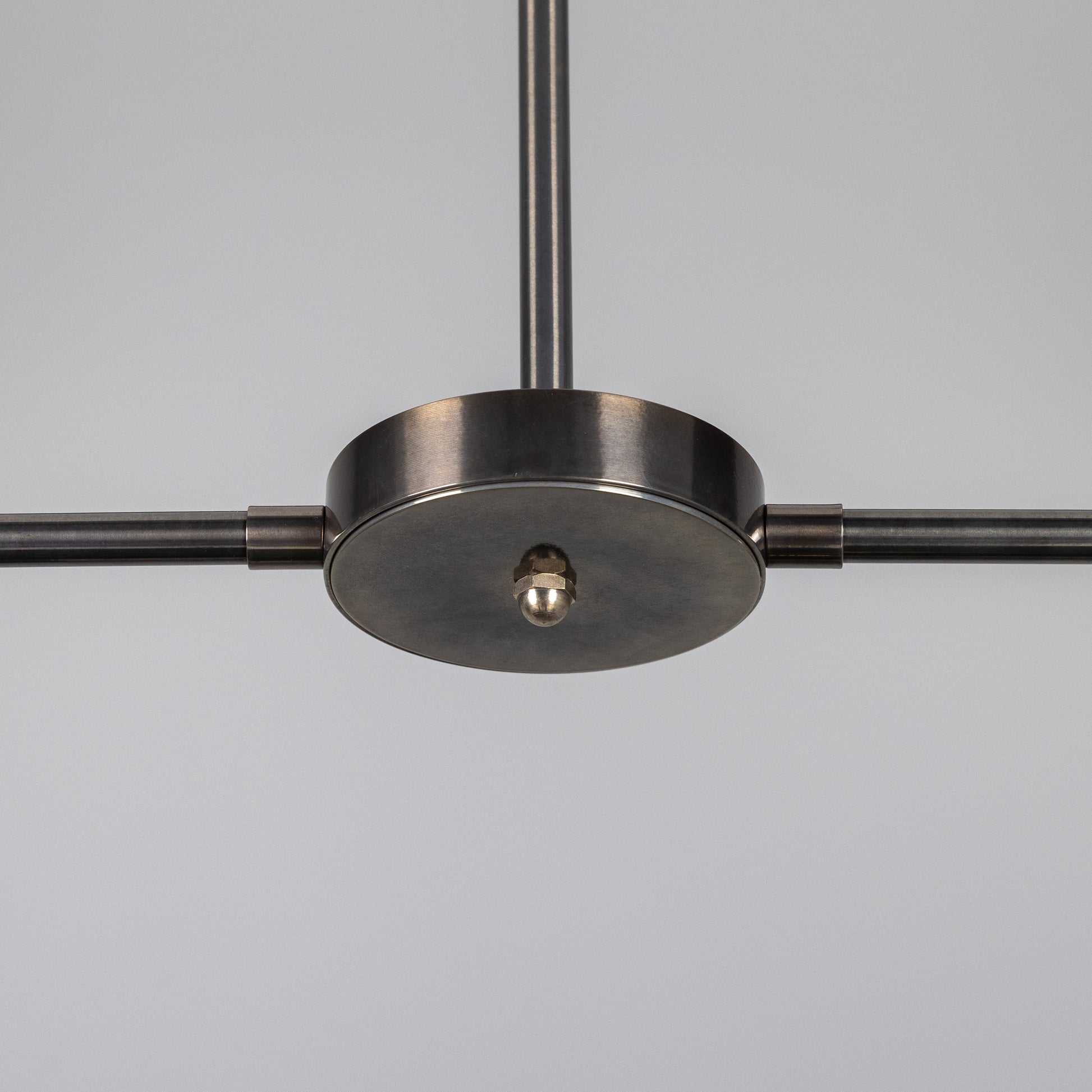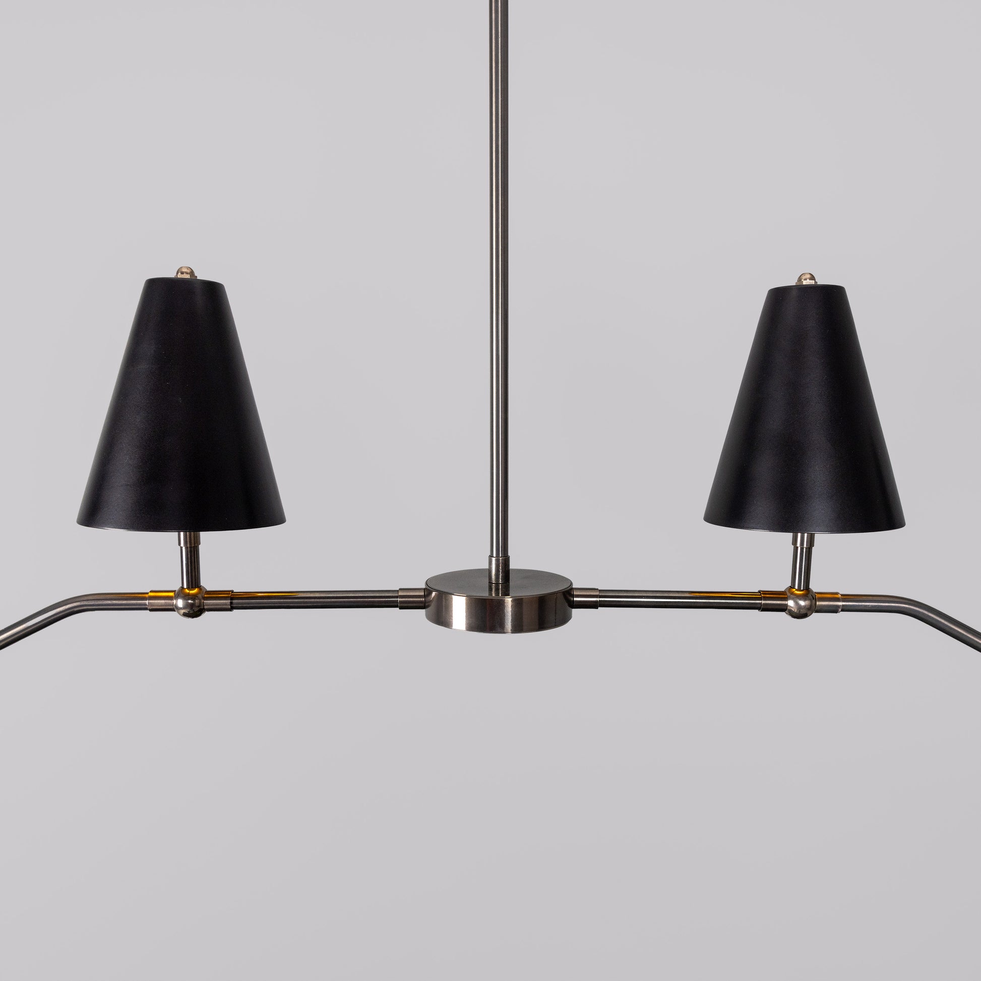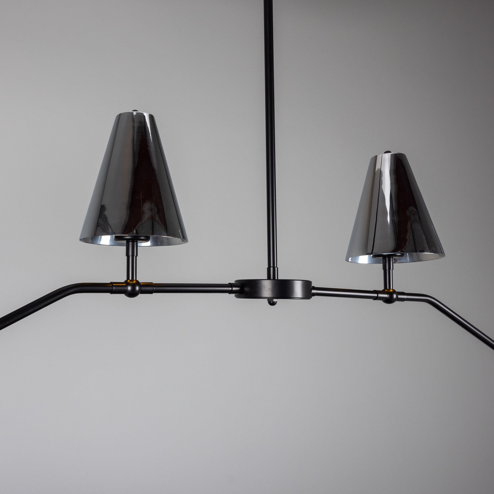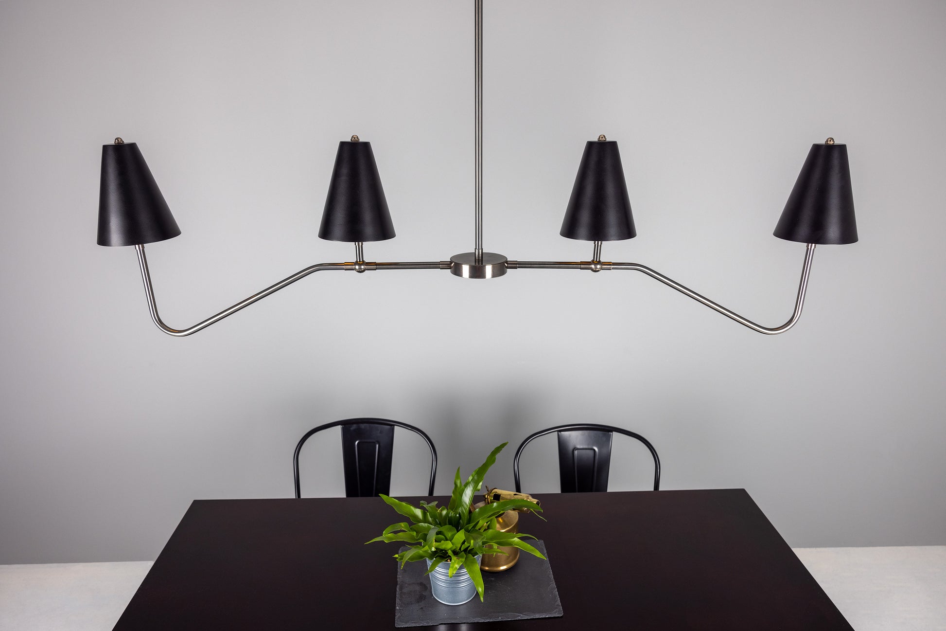 Modern geometric lines give this unique island bar chandelier a refined elegance, with an impressive yet slim profile.