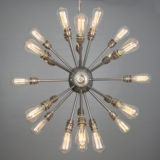 The design of this industrial-style sputnik chandelier allows light to be emitted in all directions. This sputnik chandelier has as standard chain length of 100cm, although longer lengths can be ordered.