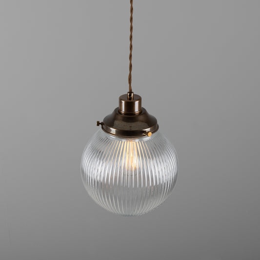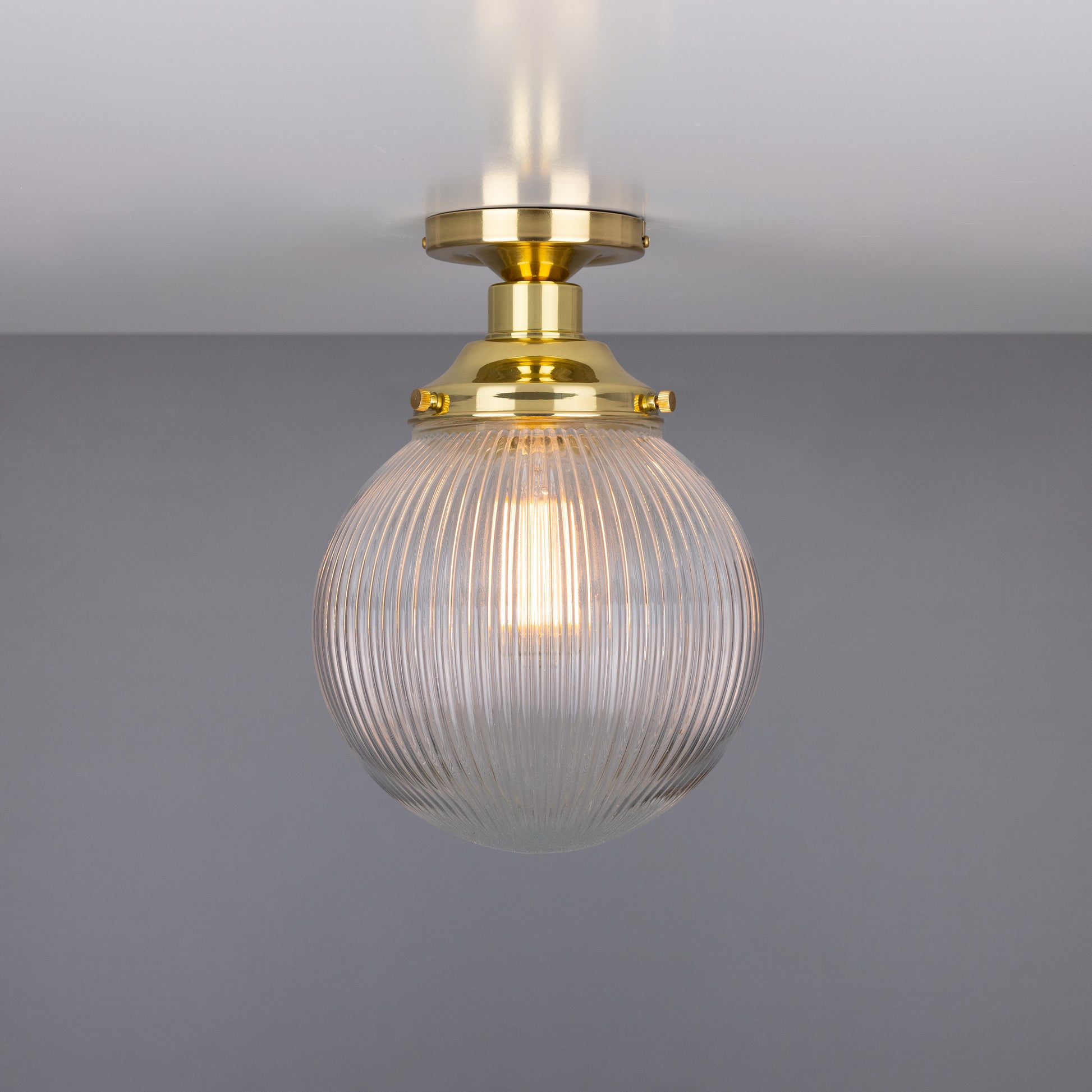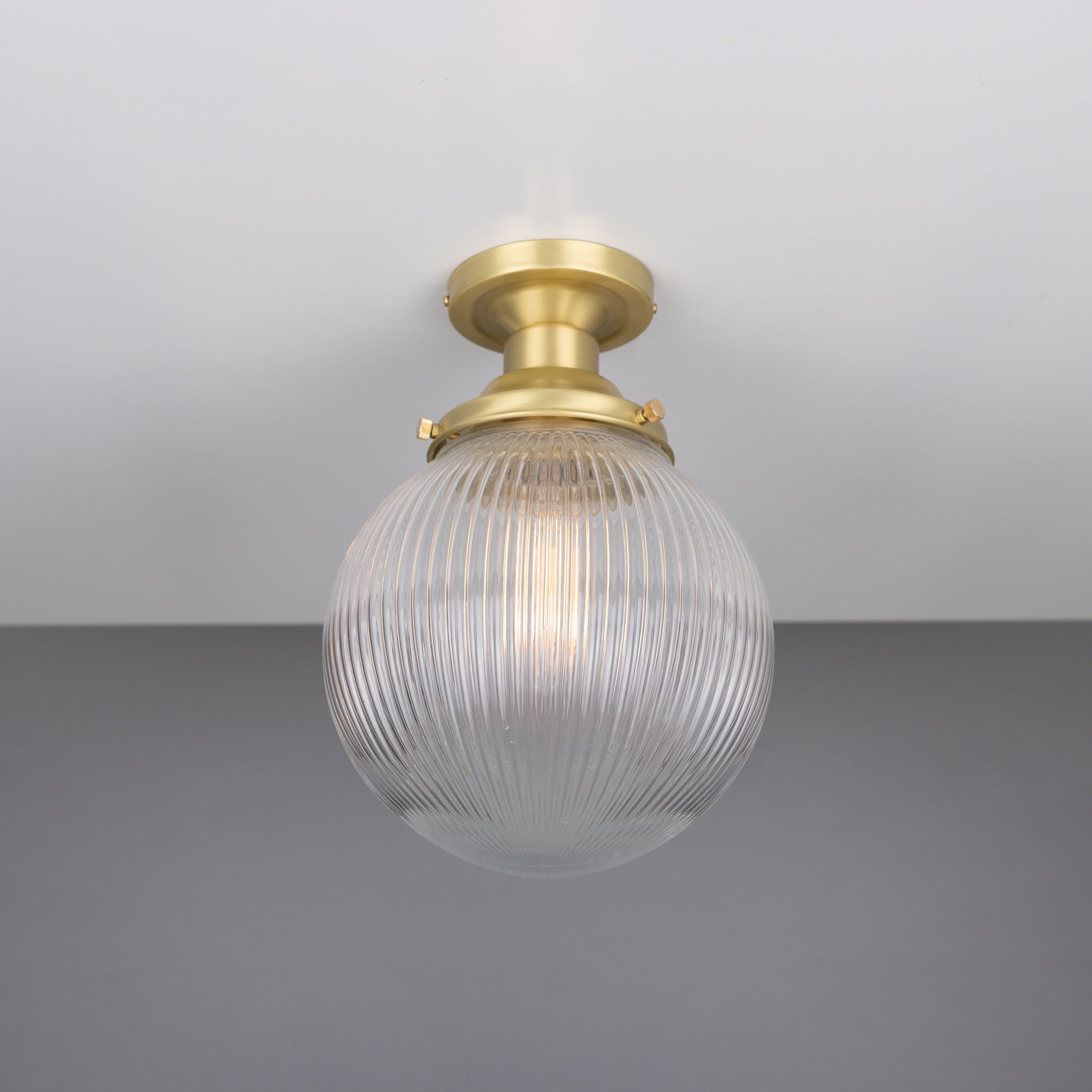 The Stanley Prismatic Globe Ceiling Fitting by Mullan Lighting exudes charm with its intricate reeded glass shade and thoughtful design.
