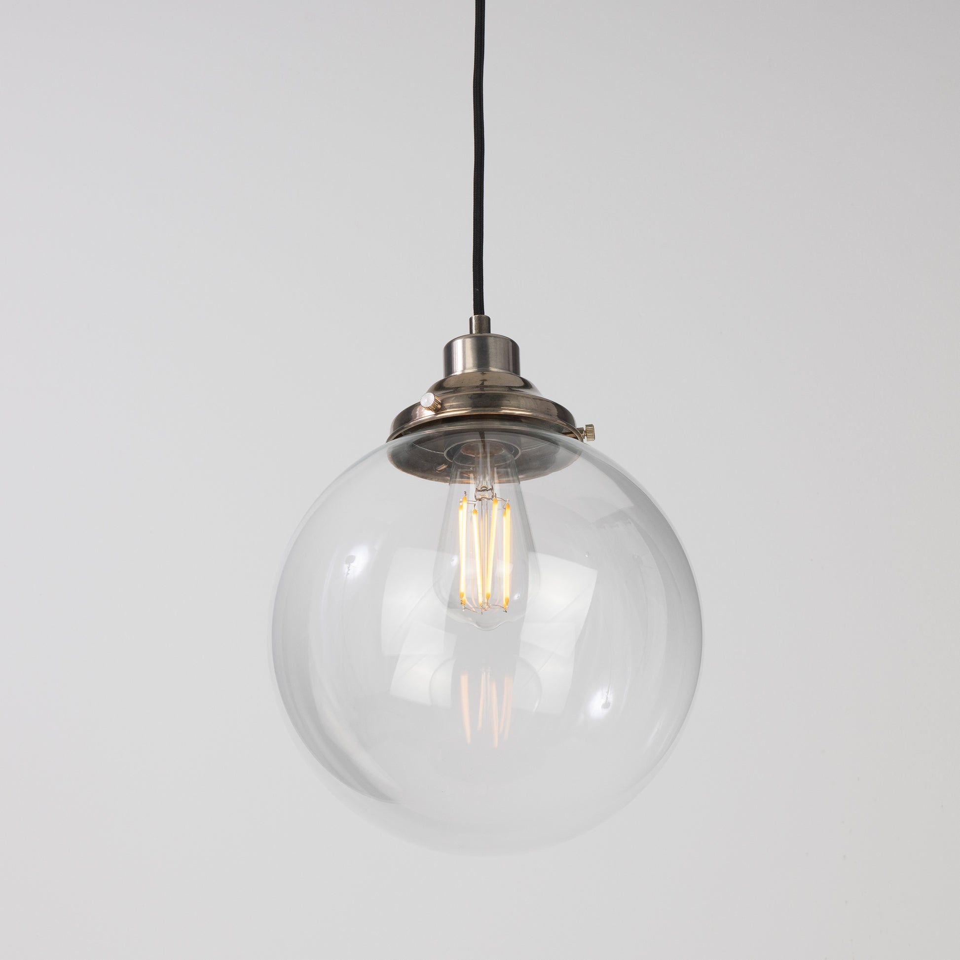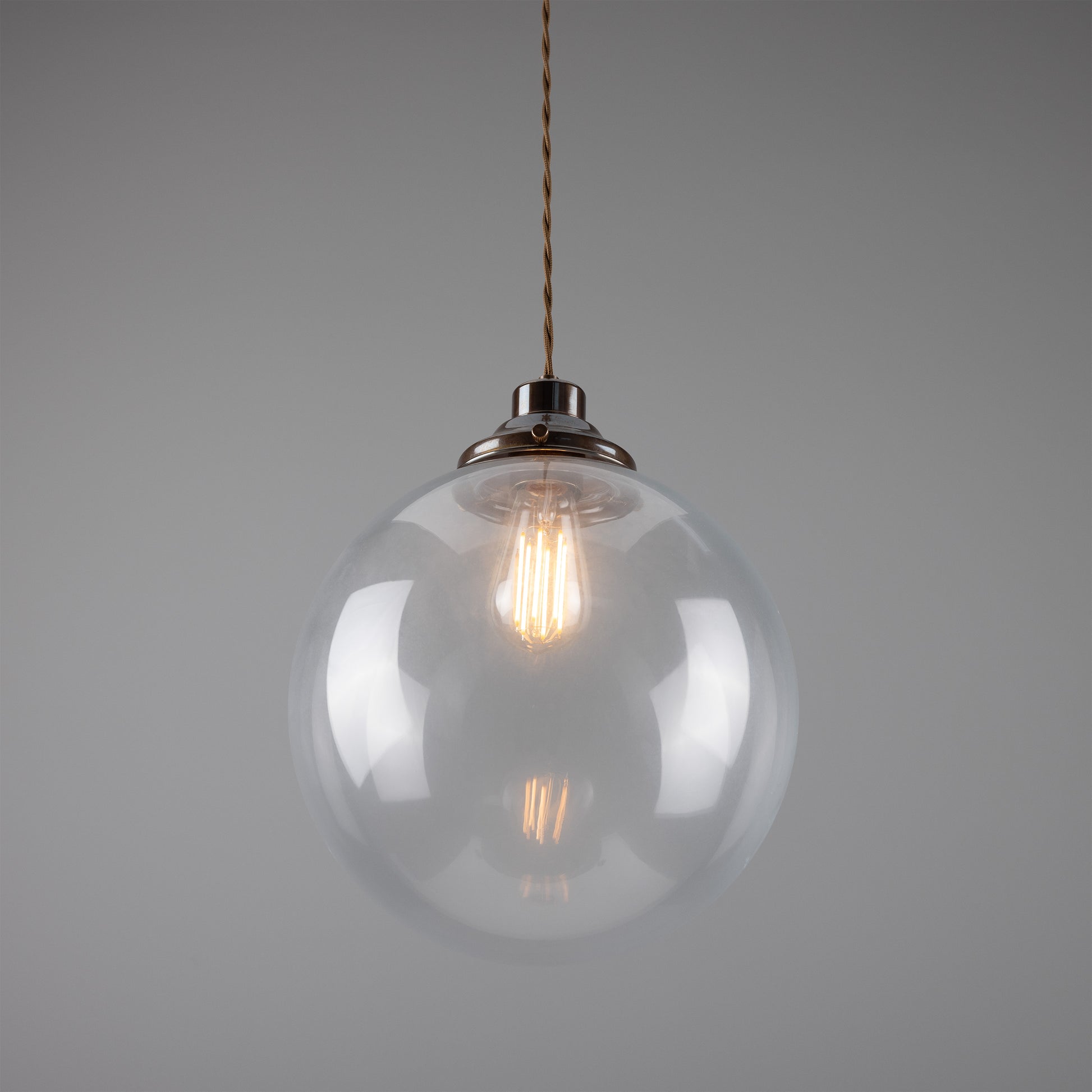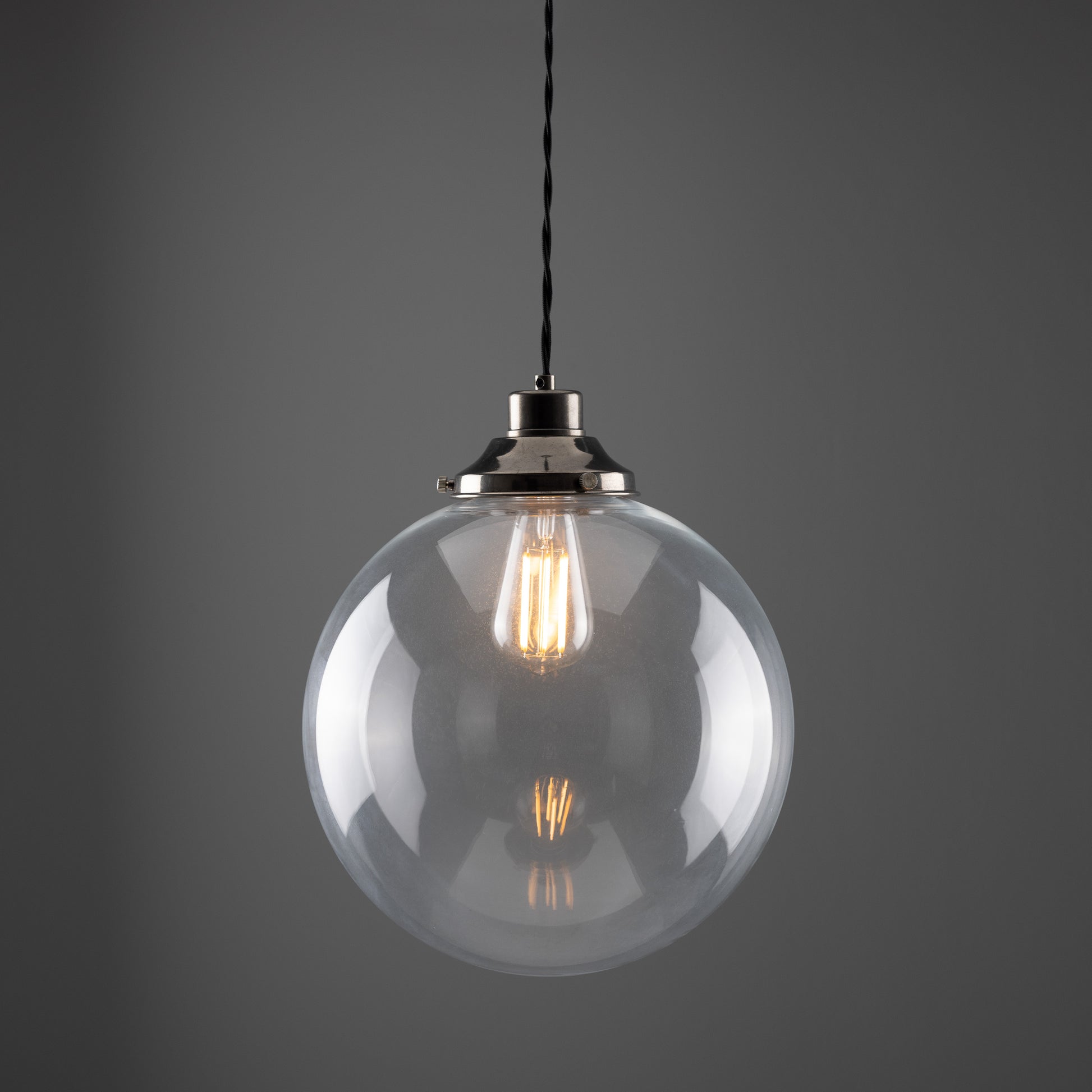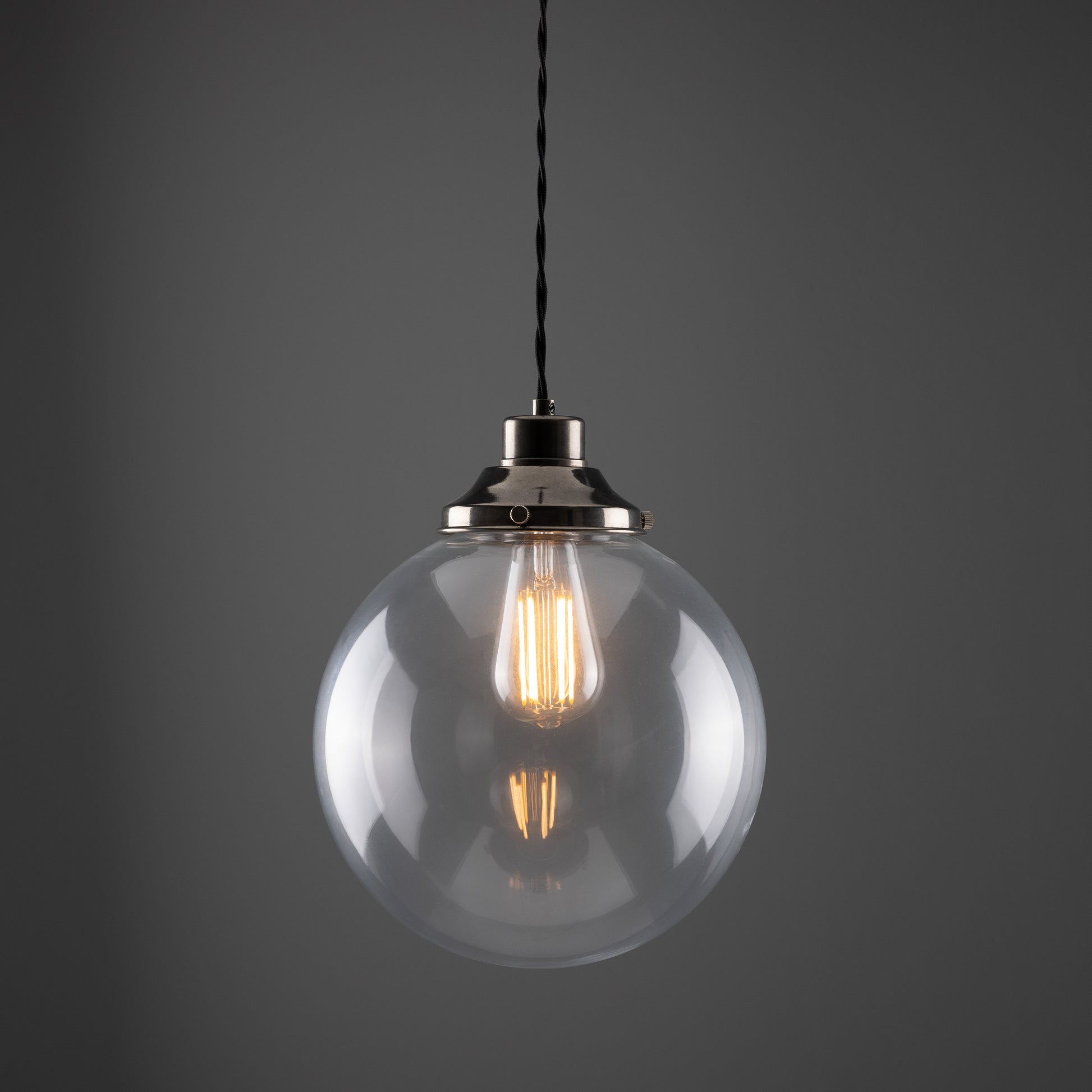 The Virginia glass globe pendant is the perfect fixture to add ambient light to your home or business. Suspended from its supplied ceiling rose, this contemporary pendant light can be hung individually or together in groups of three or five to create the ultimate focal point. Add in one of our vintage LED Edison bulbs to this classic pendant to create an overall inviting and warm statement piece.