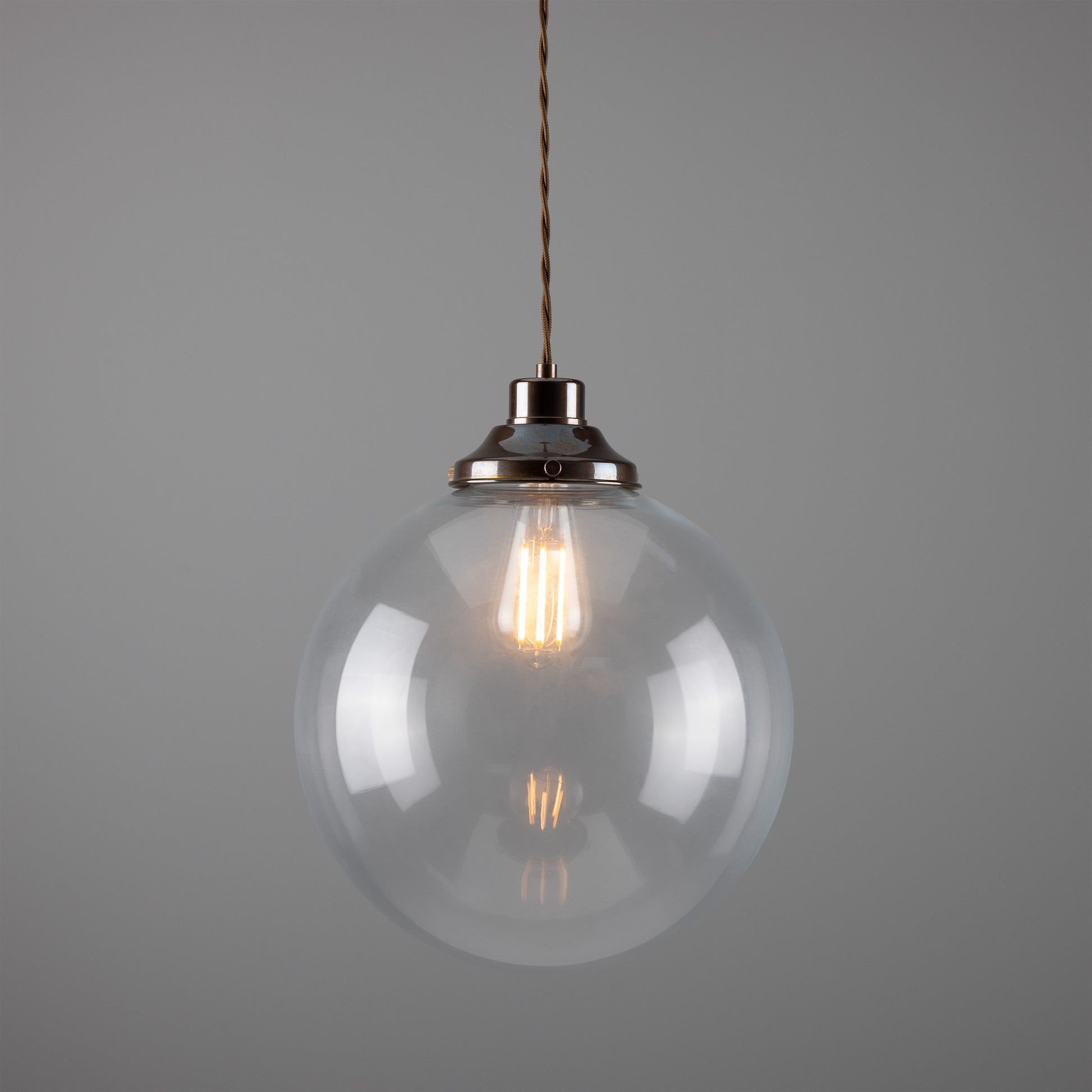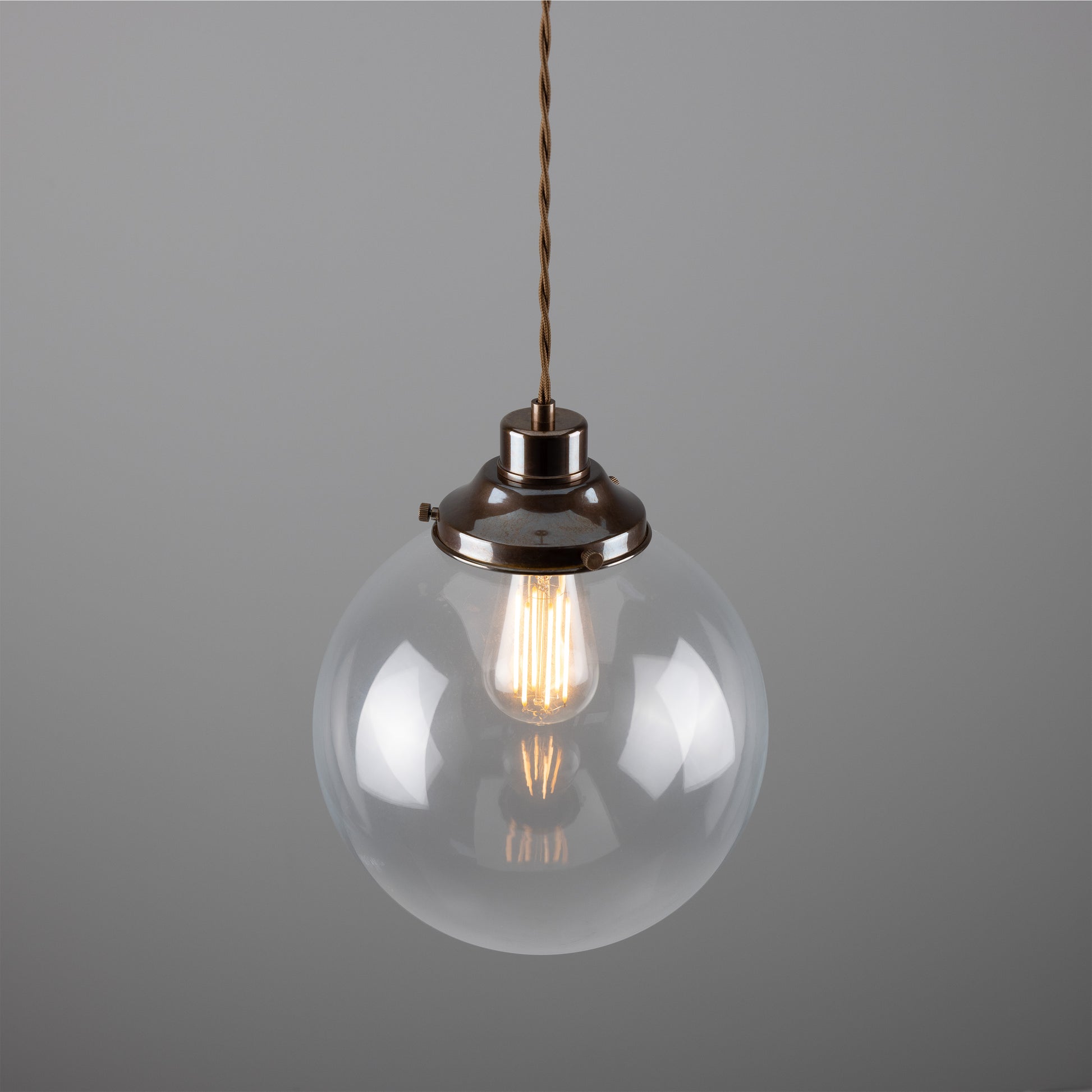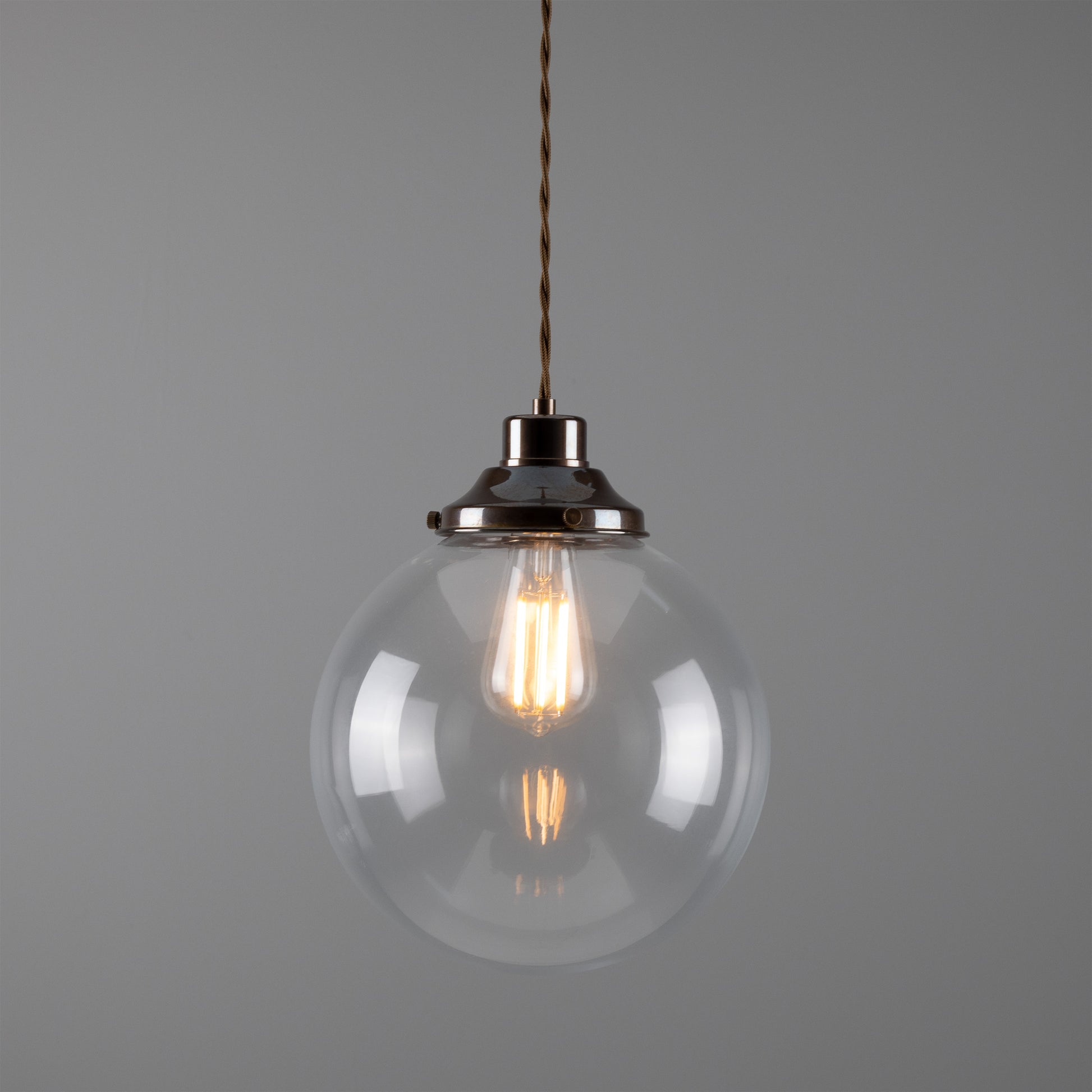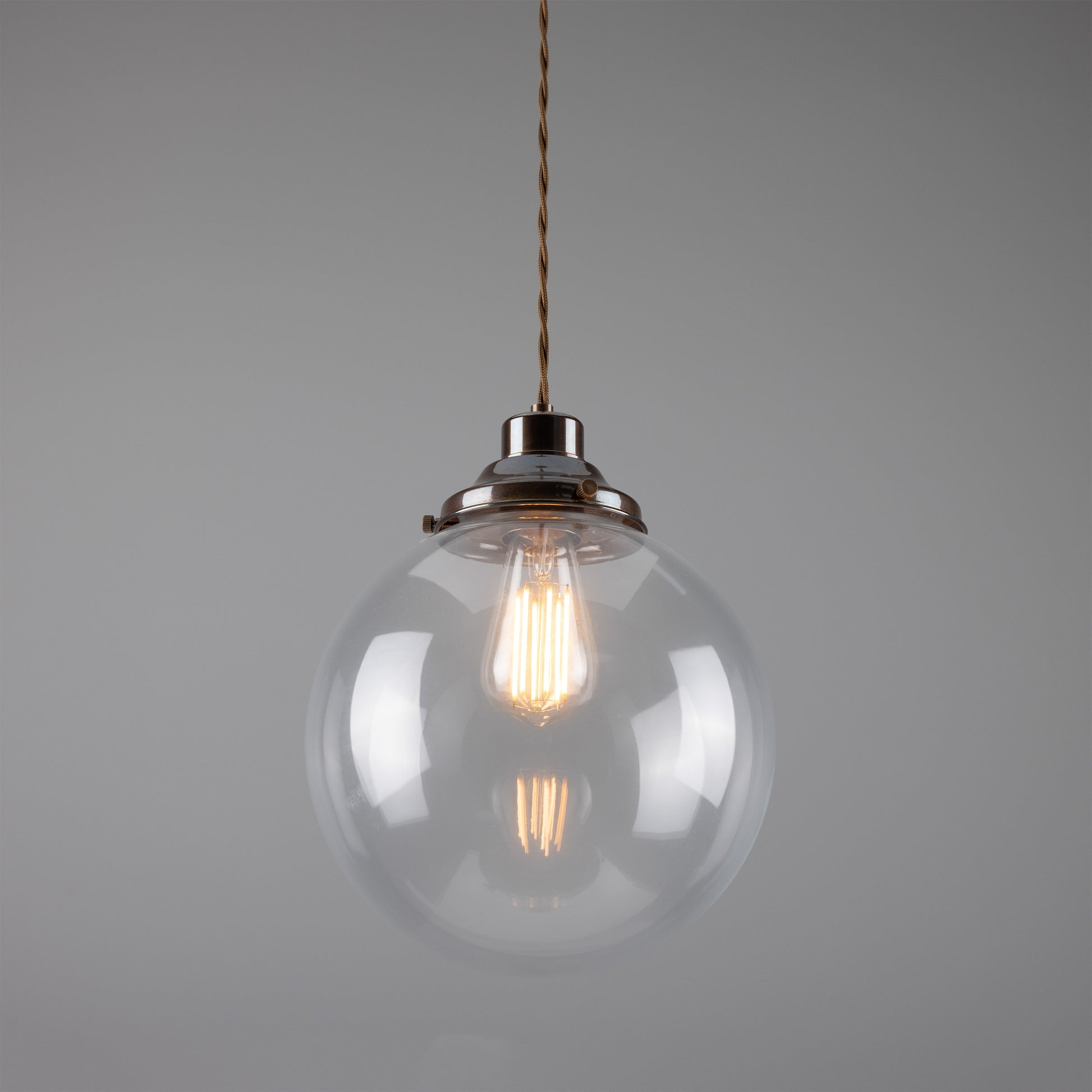 The Virginia glass globe pendant is the perfect fixture to add ambient light to your home or business. Suspended from its supplied ceiling rose, this contemporary pendant light can be hung individually or together in groups of three or five to create the ultimate focal point. Add in one of our vintage LED Edison bulbs to this classic pendant to create an overall inviting and warm statement piece.