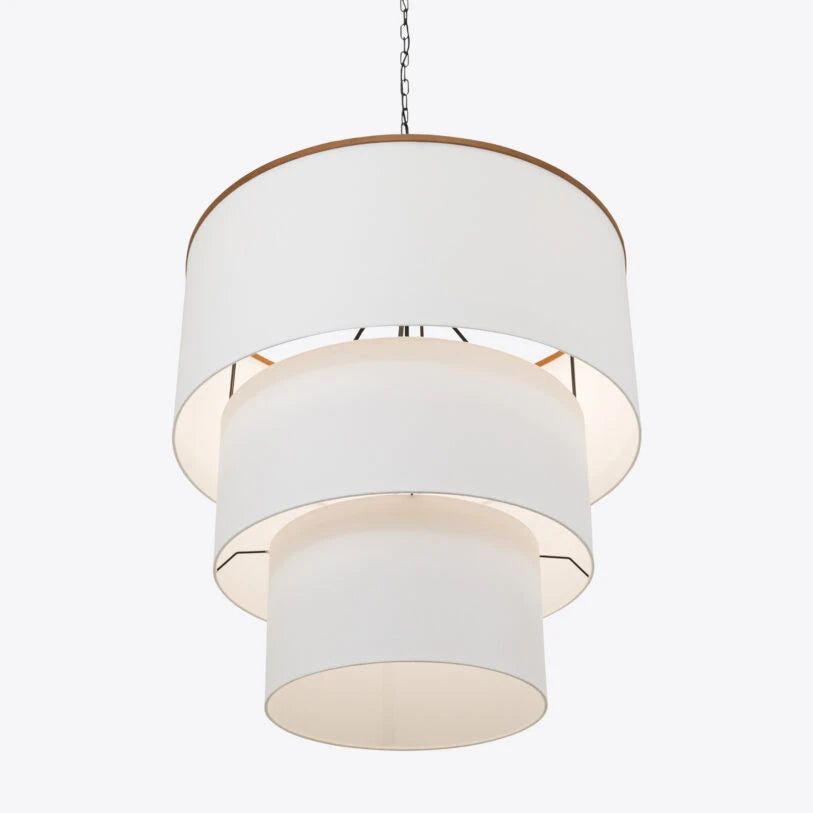 Featuring a three‑tiered arrangement of sleek off‑white fabric shades suspended from a matt black frame, the Willow Pendant creates a visually captivating profile — its layered silhouette adding depth while softly diffusing light throughout the room.