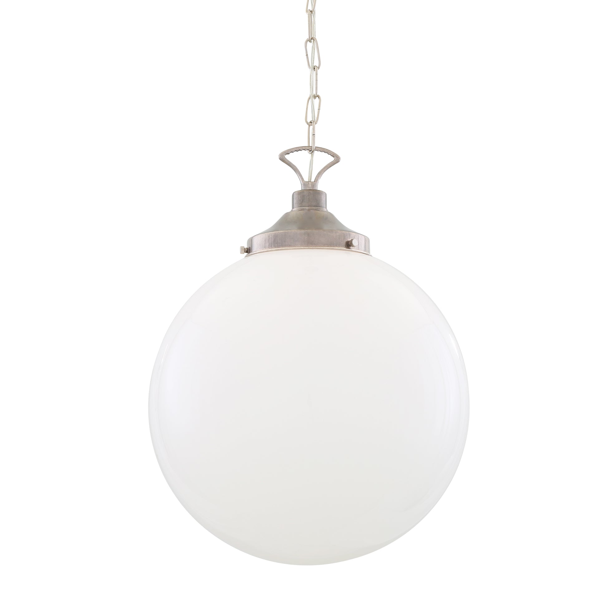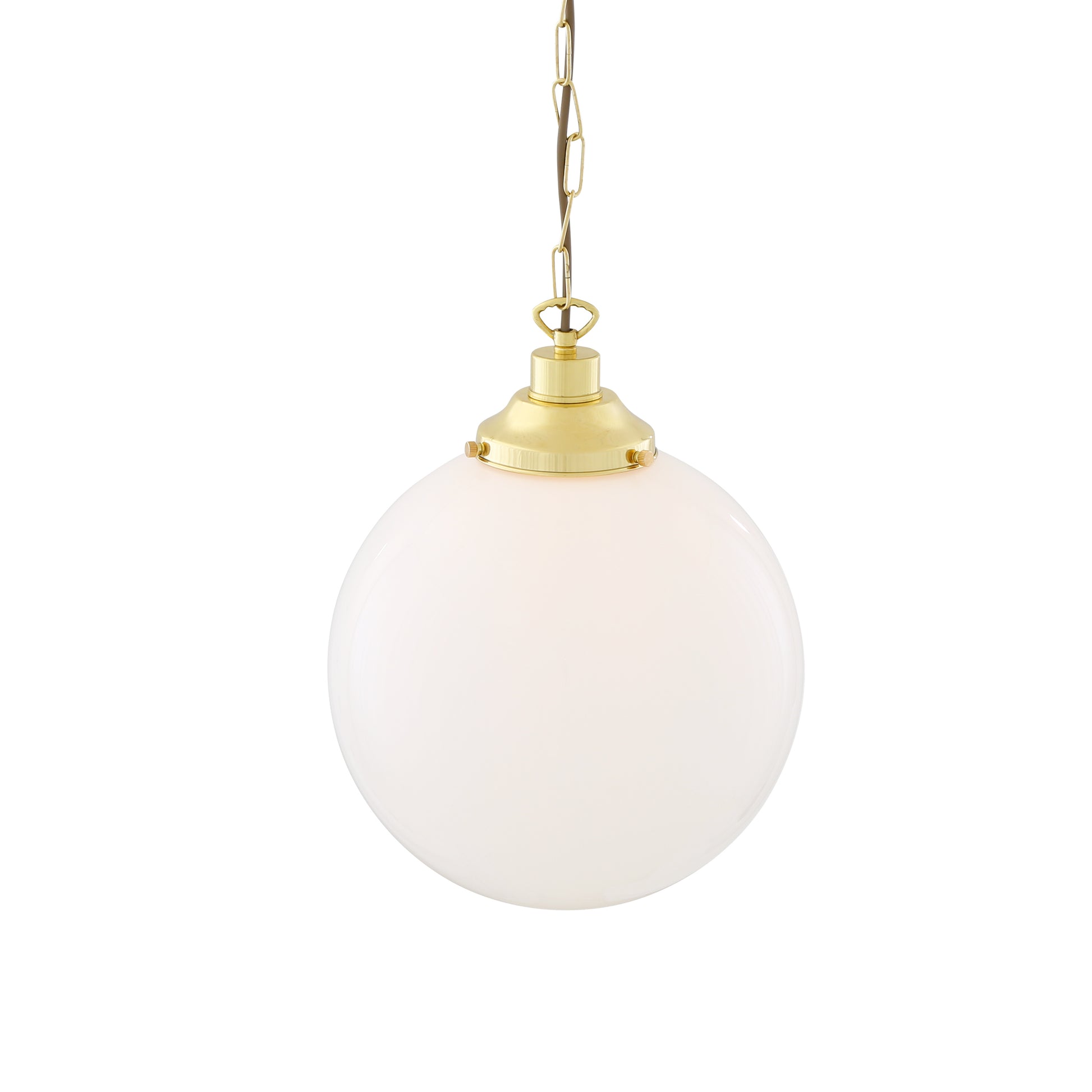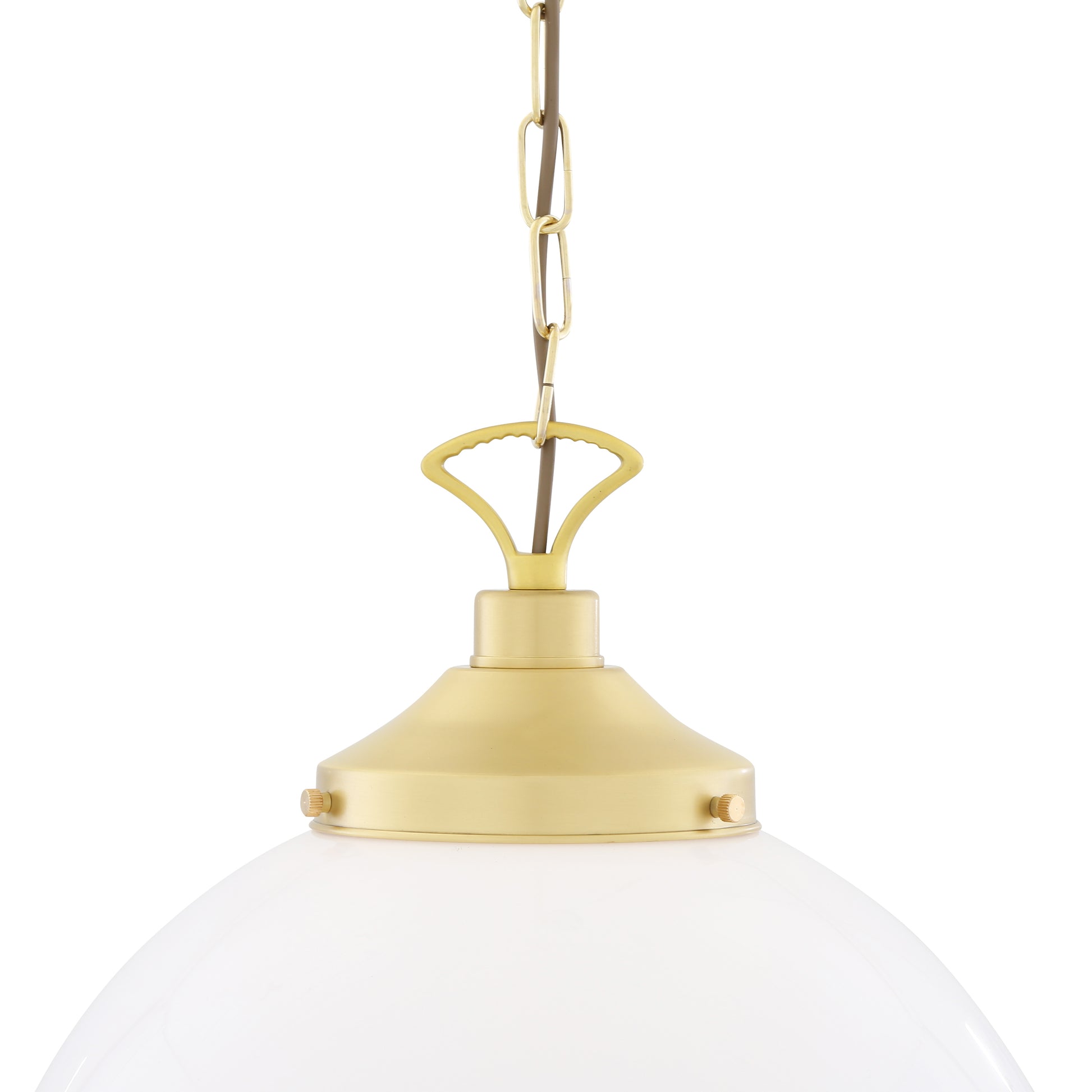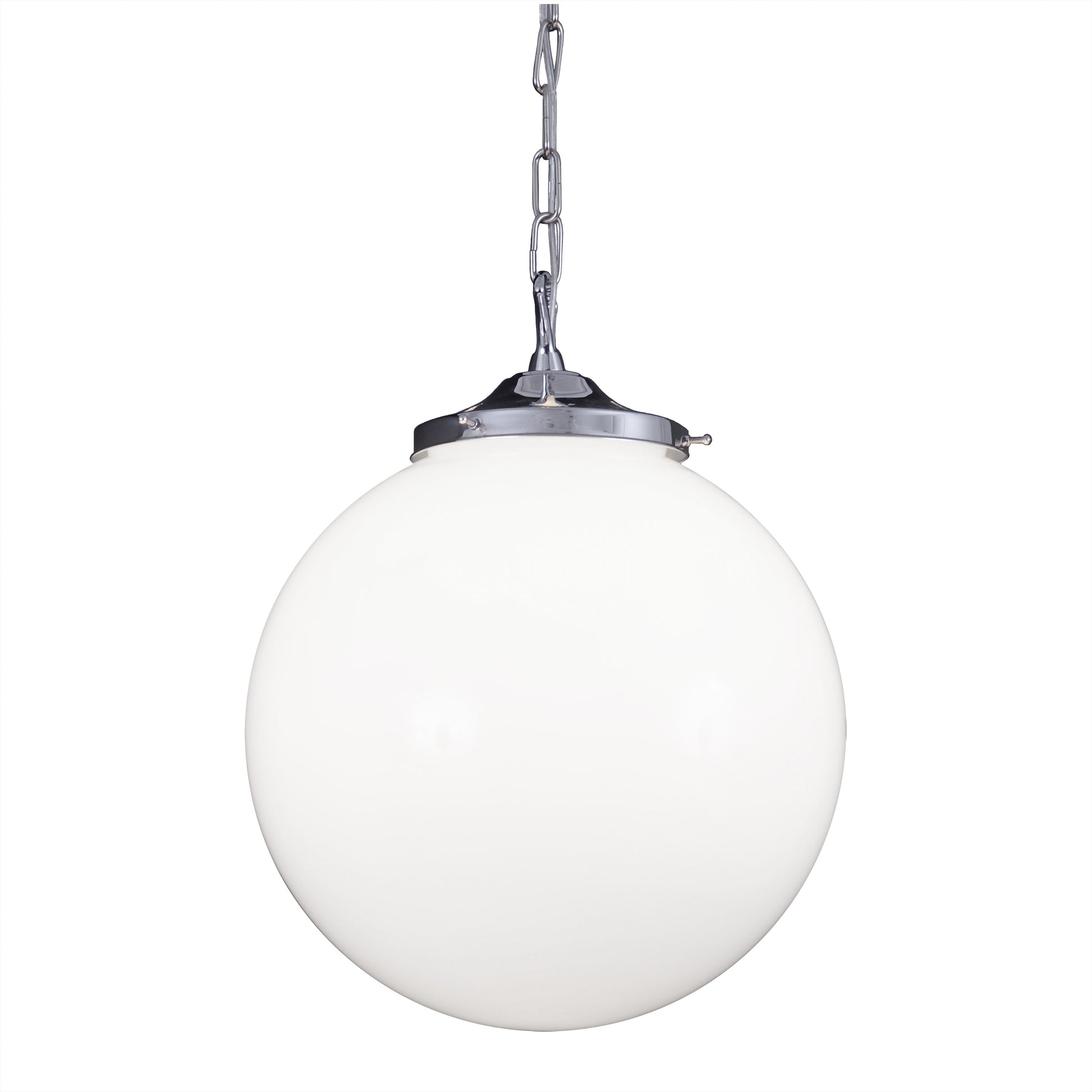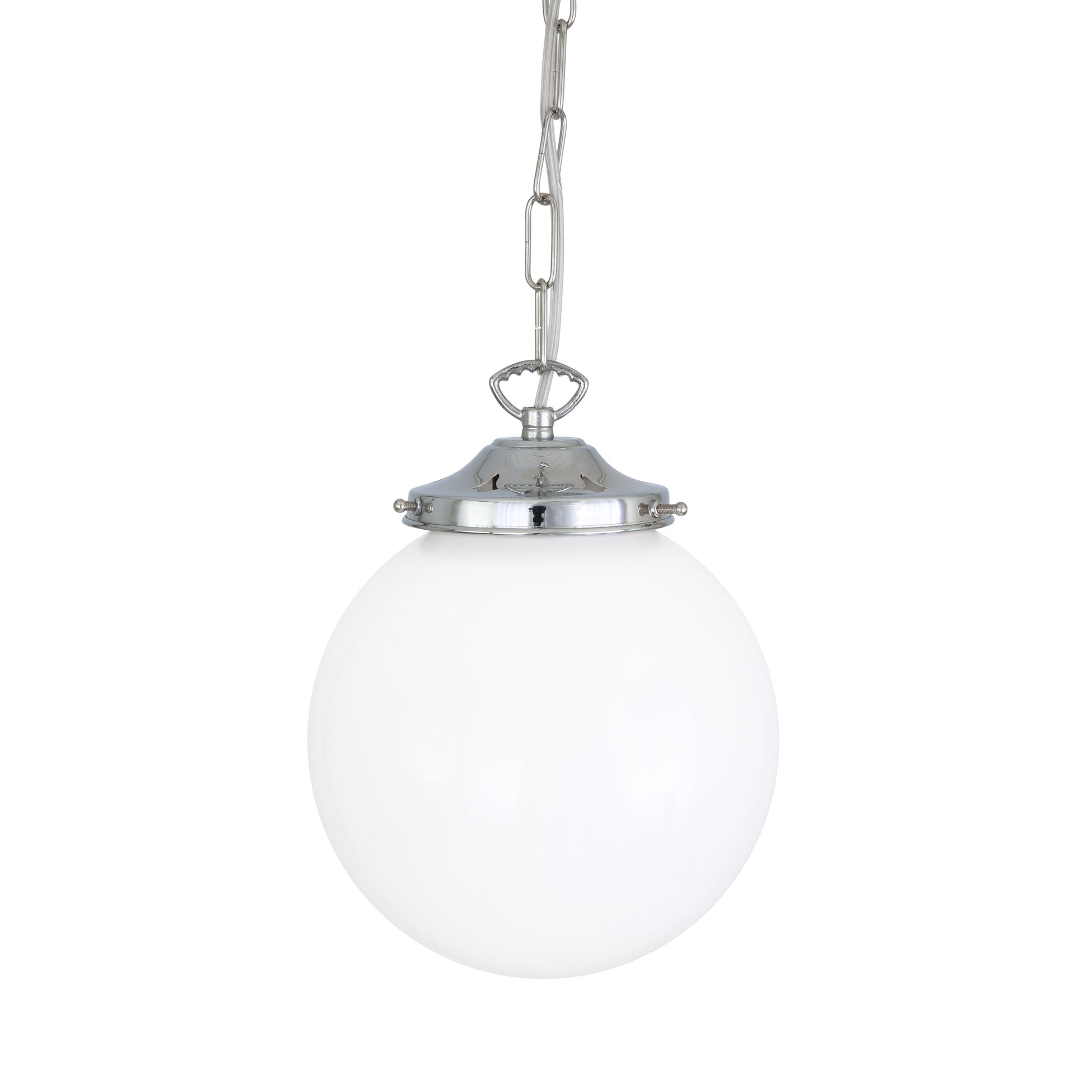 Suspended from a simple chain, this glass pendant light features a classic opal glass shade to cast a soft ambient light over a wide area.