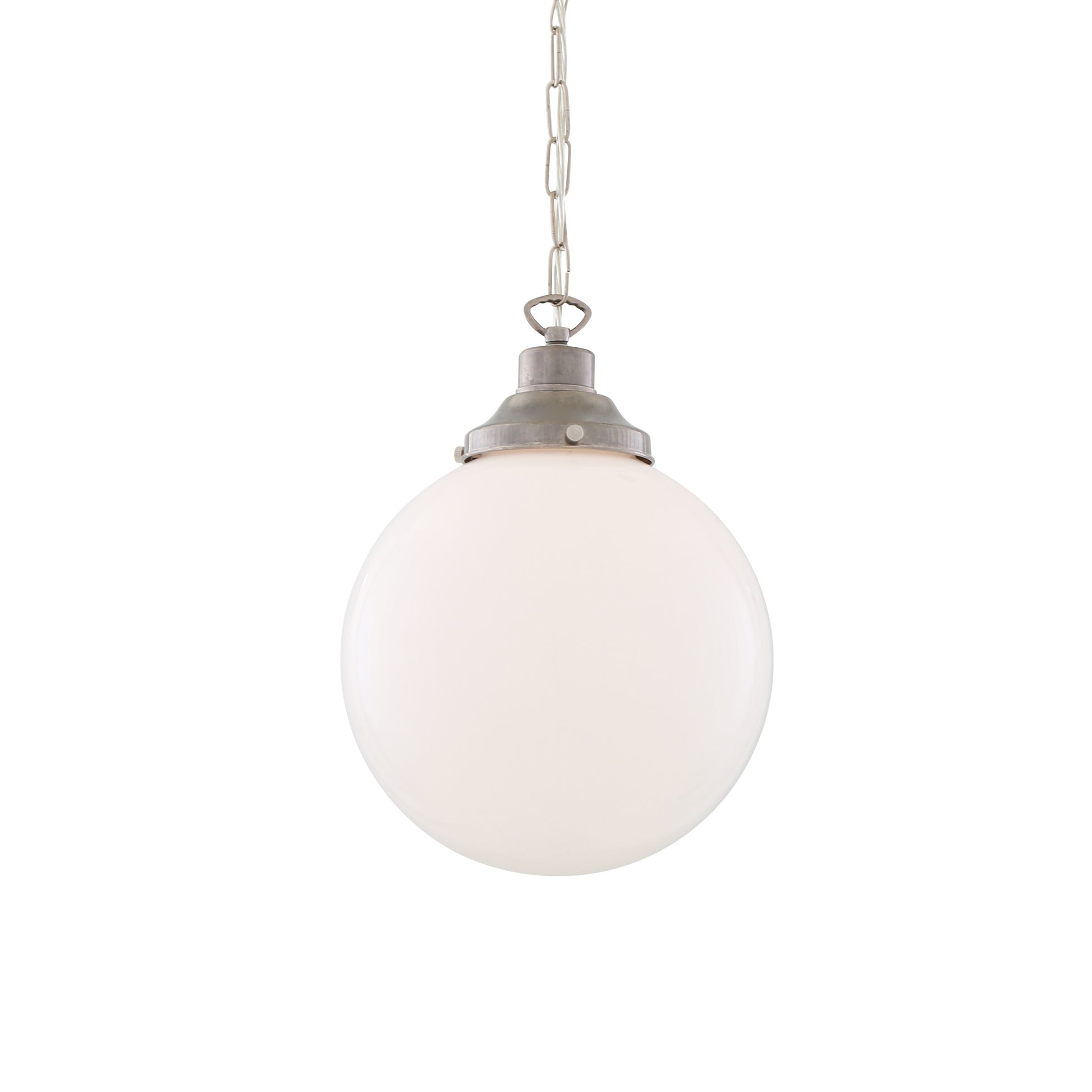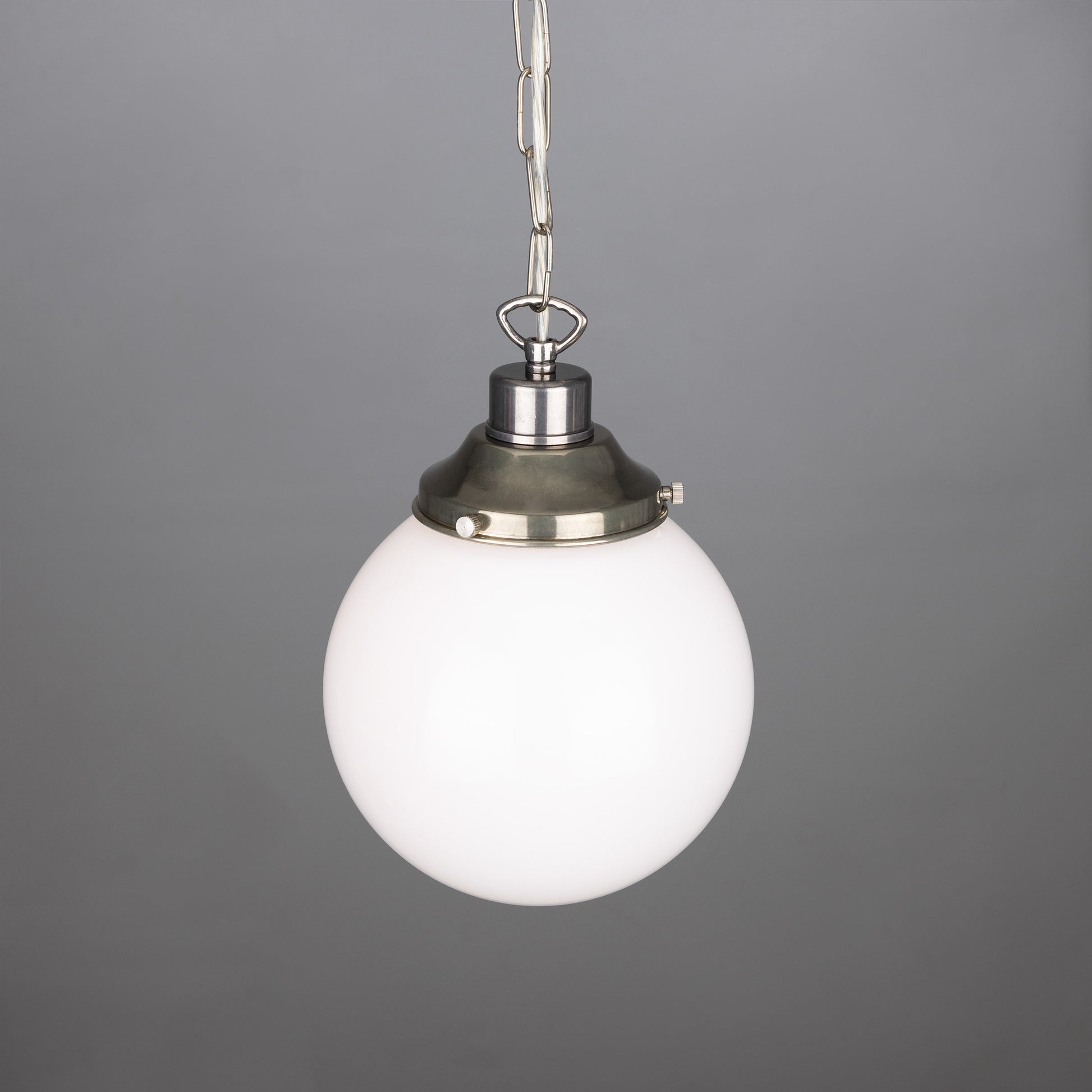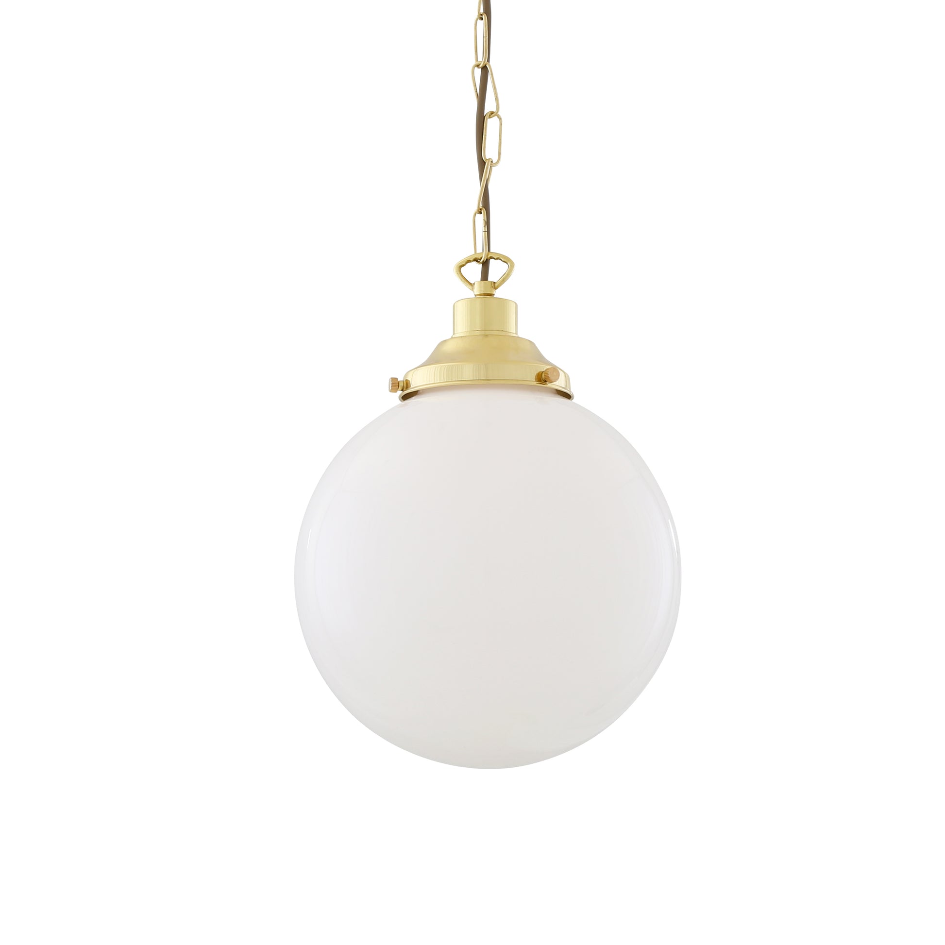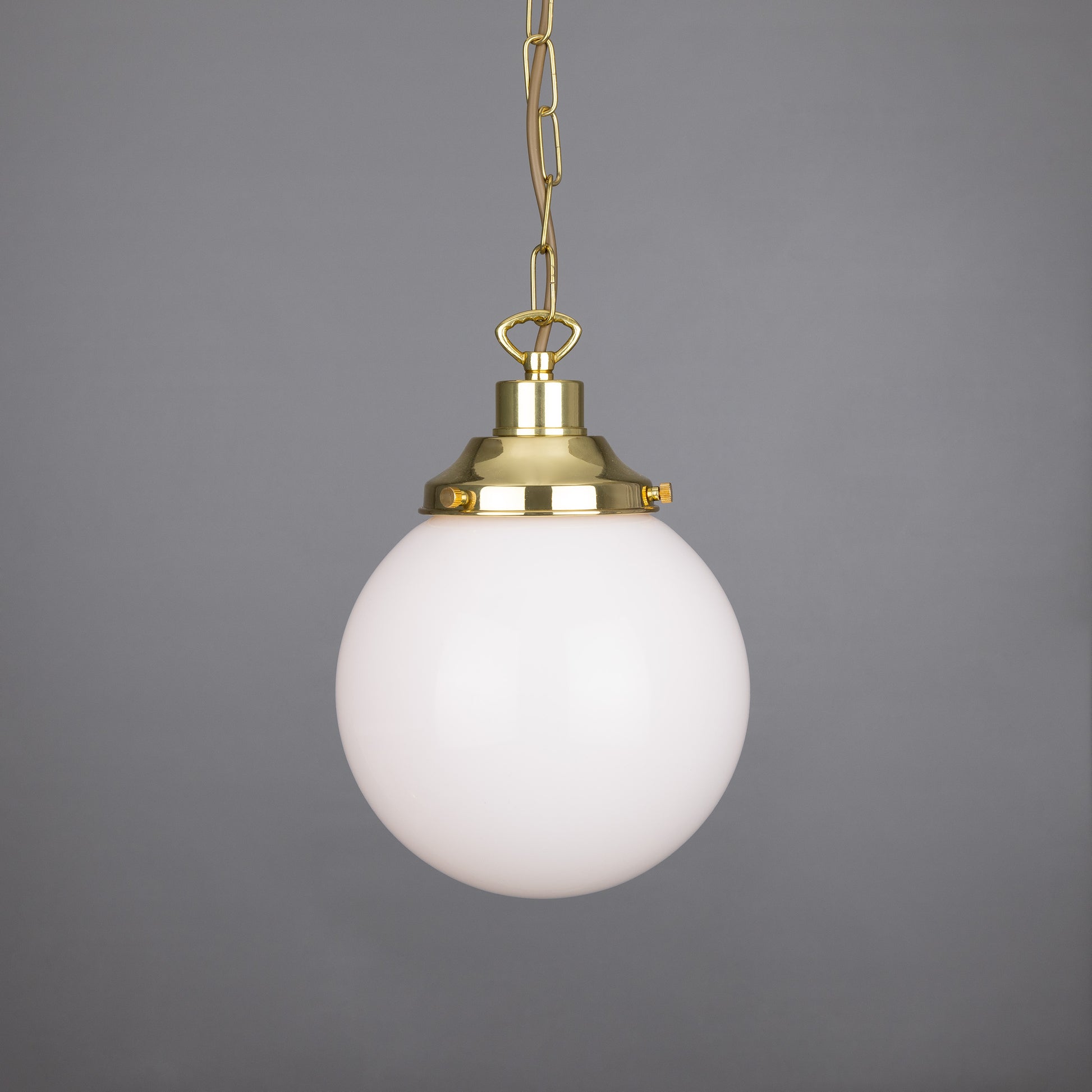 Suspended from a simple chain, this glass pendant light features a classic opal glass shade to cast a soft ambient light over a wide area.