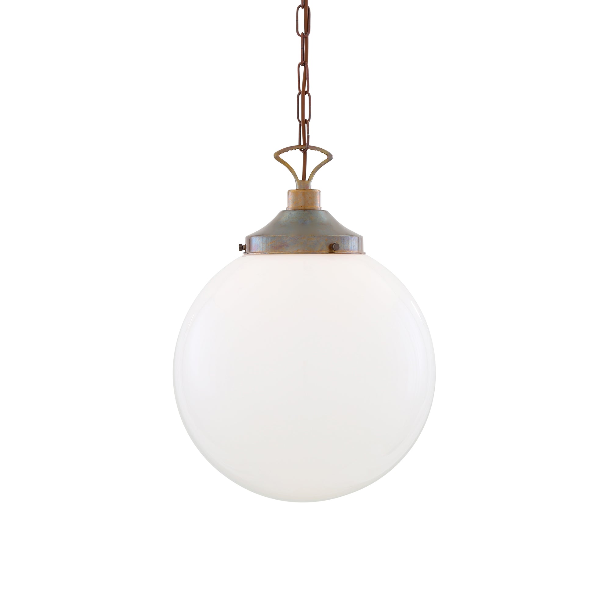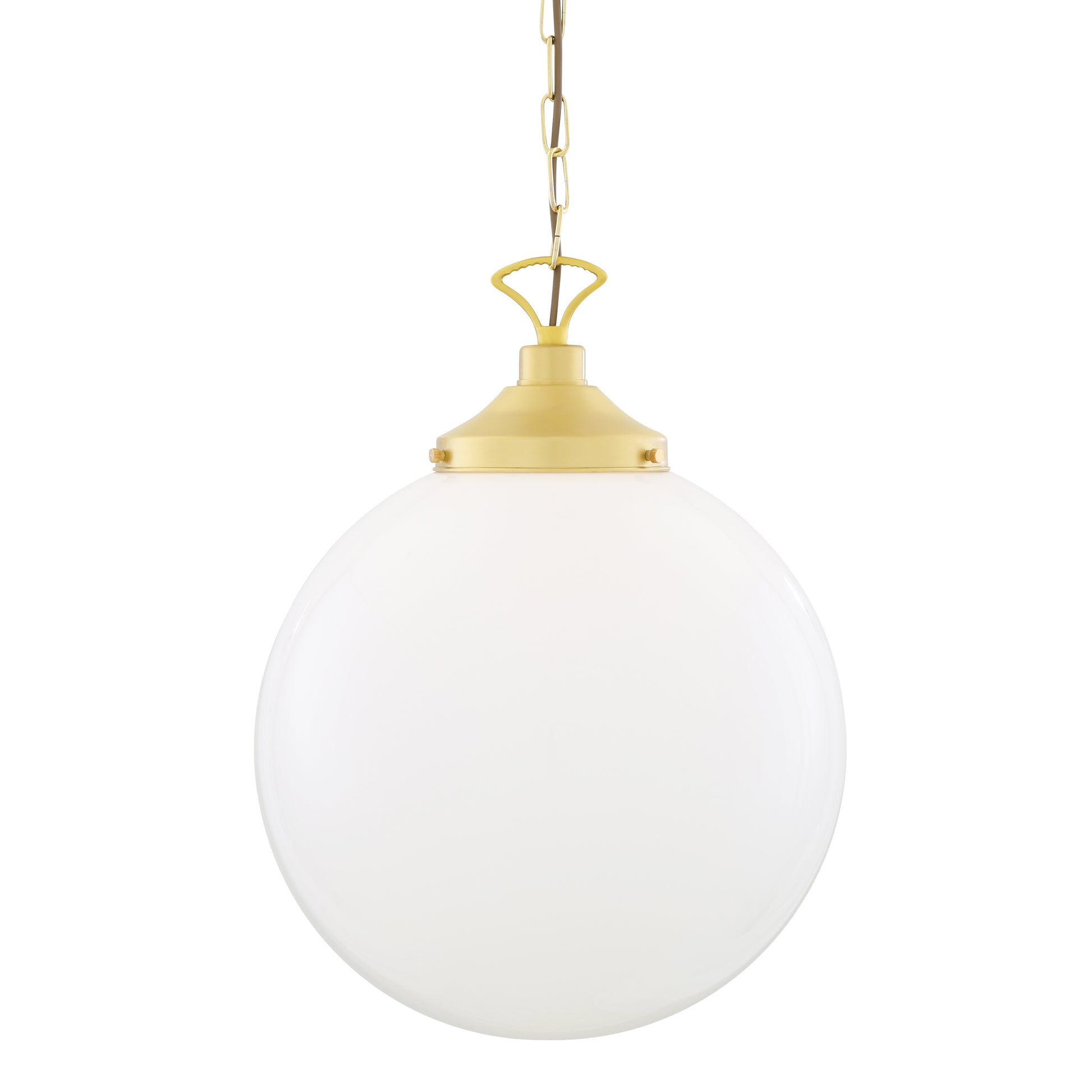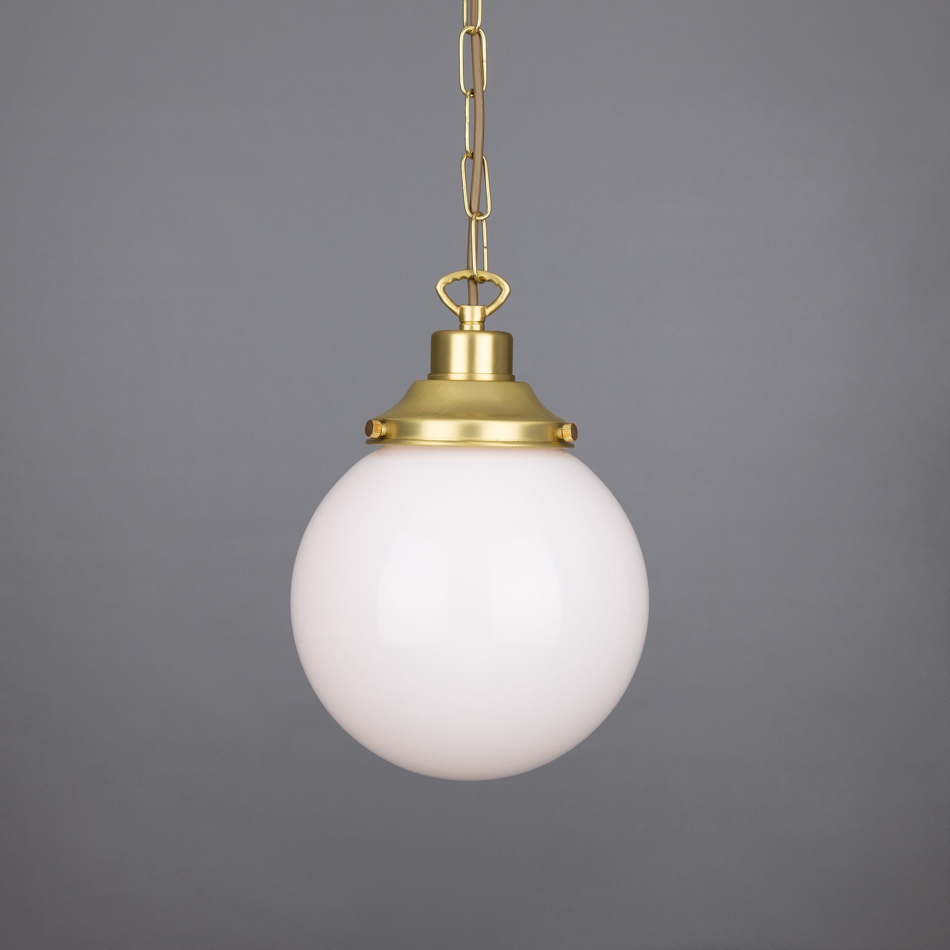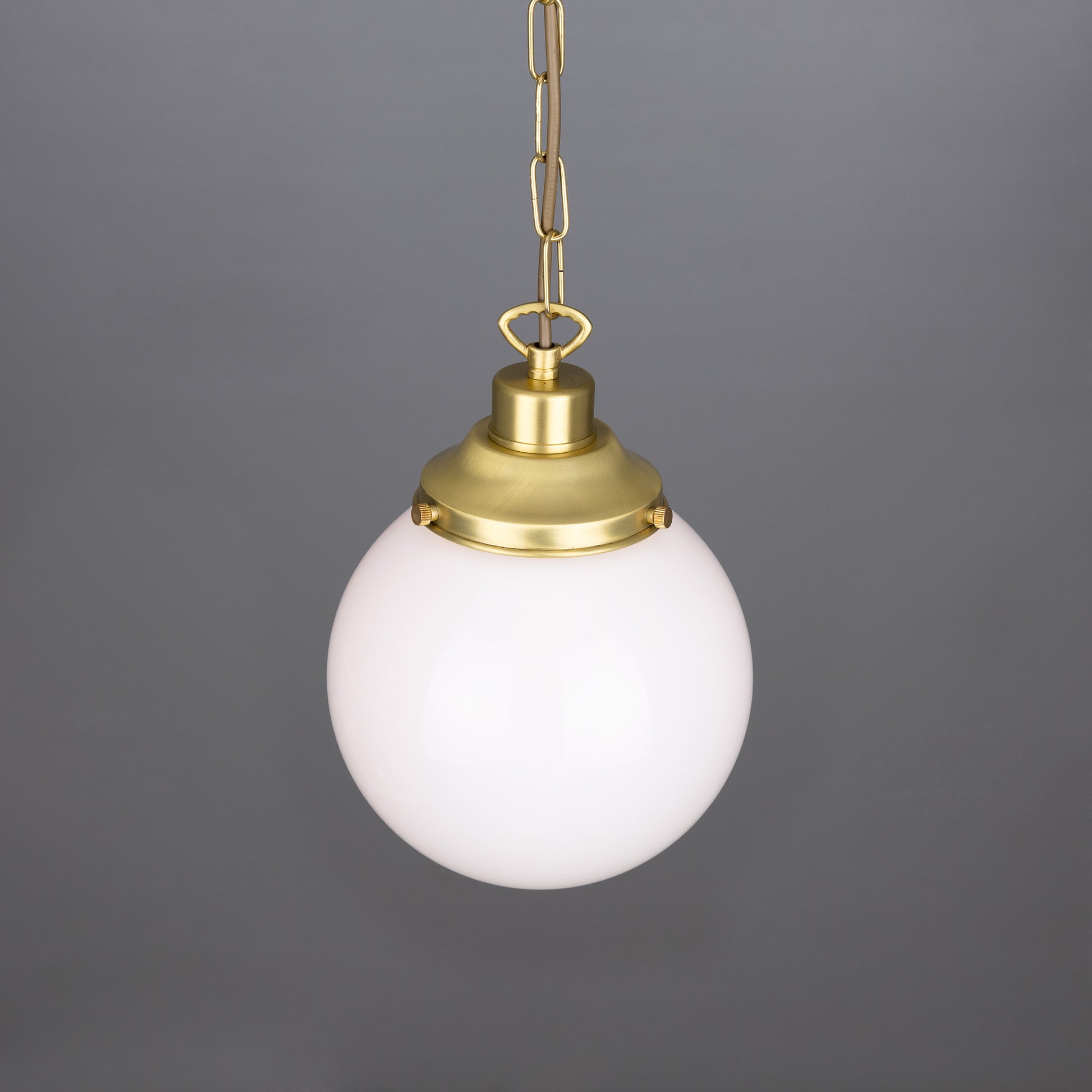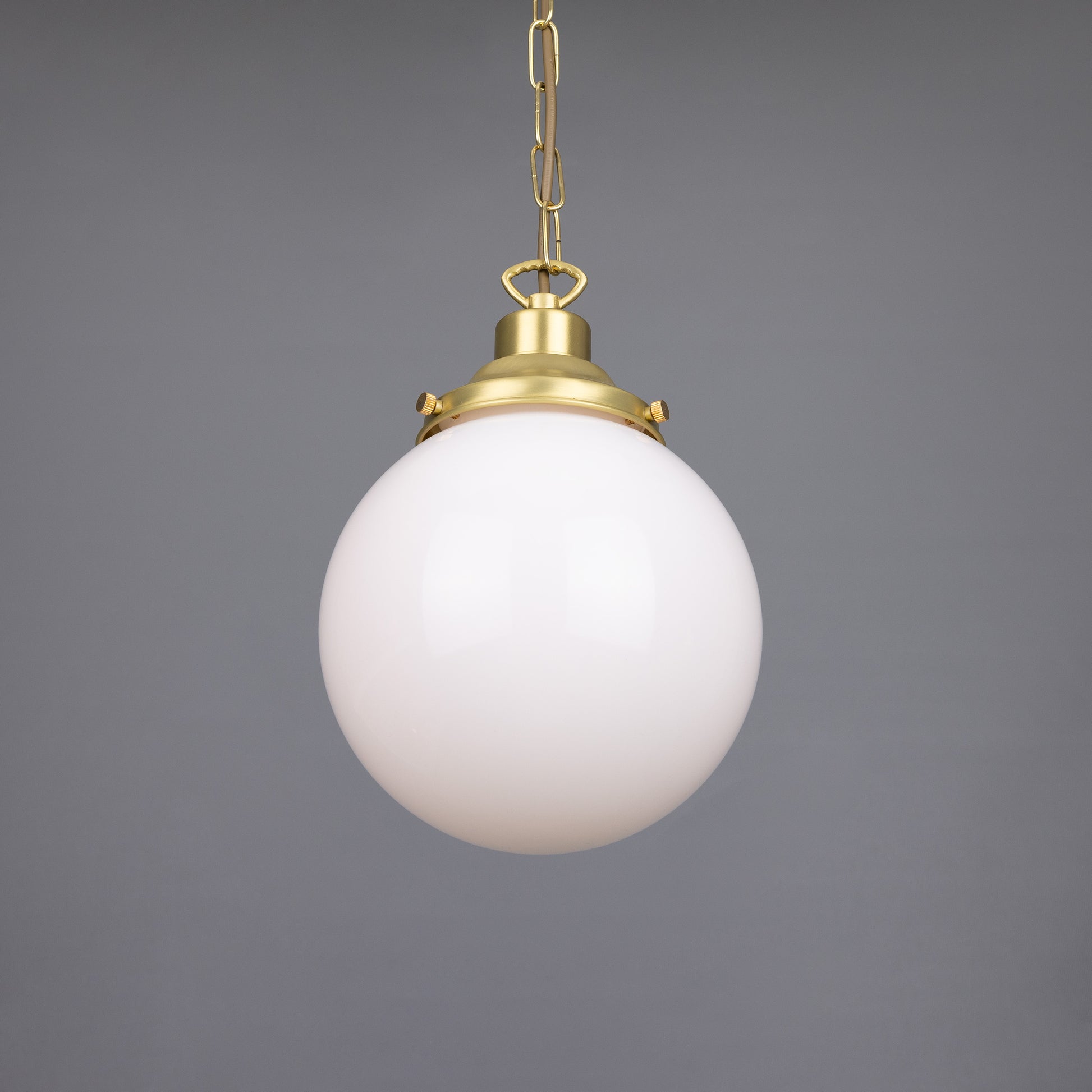 Suspended from a simple chain, this glass pendant light features a classic opal glass shade to cast a soft ambient light over a wide area.