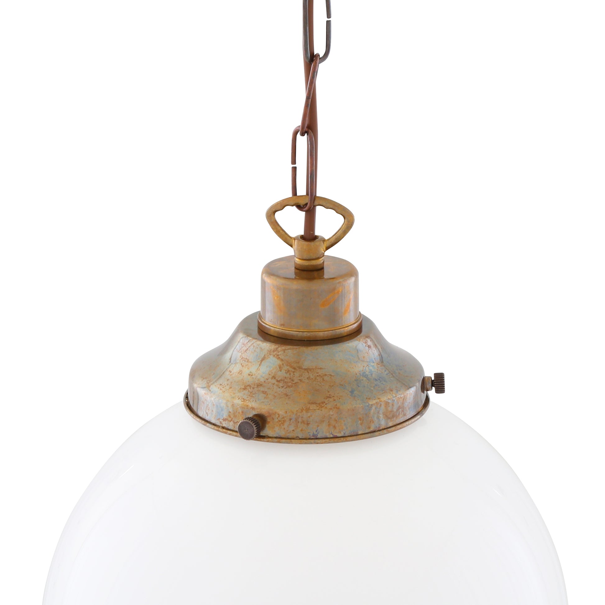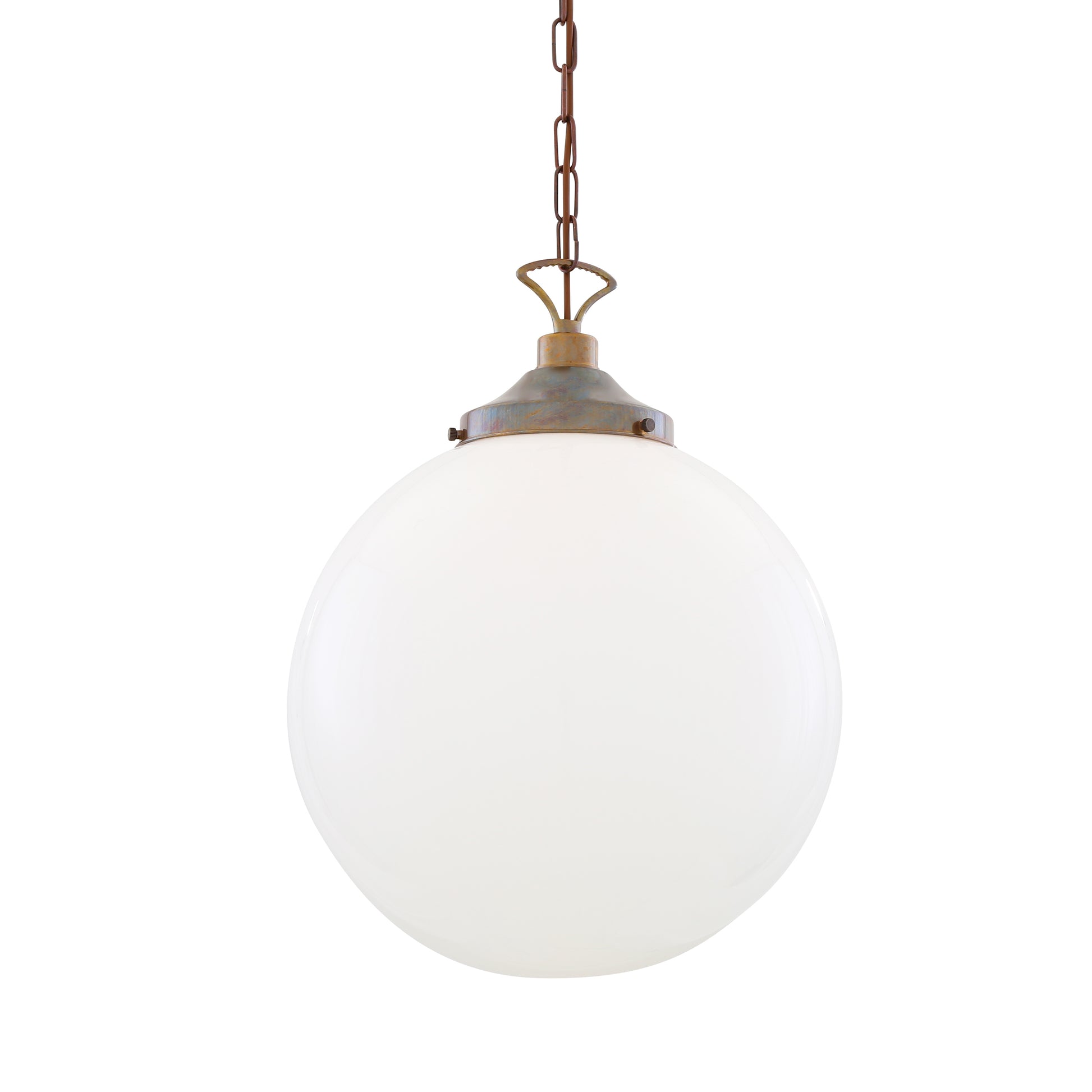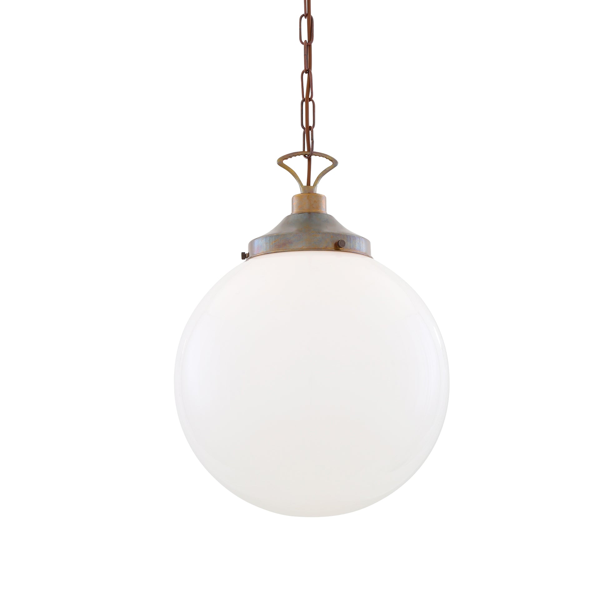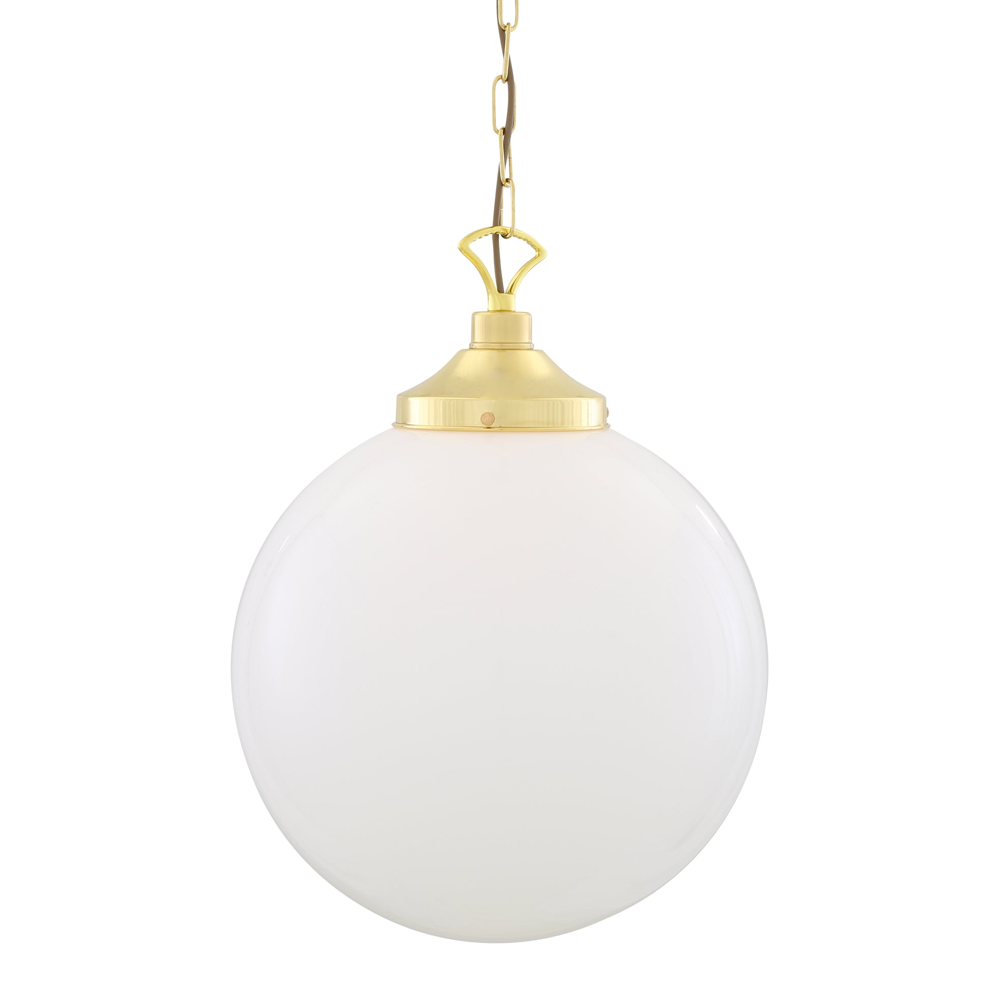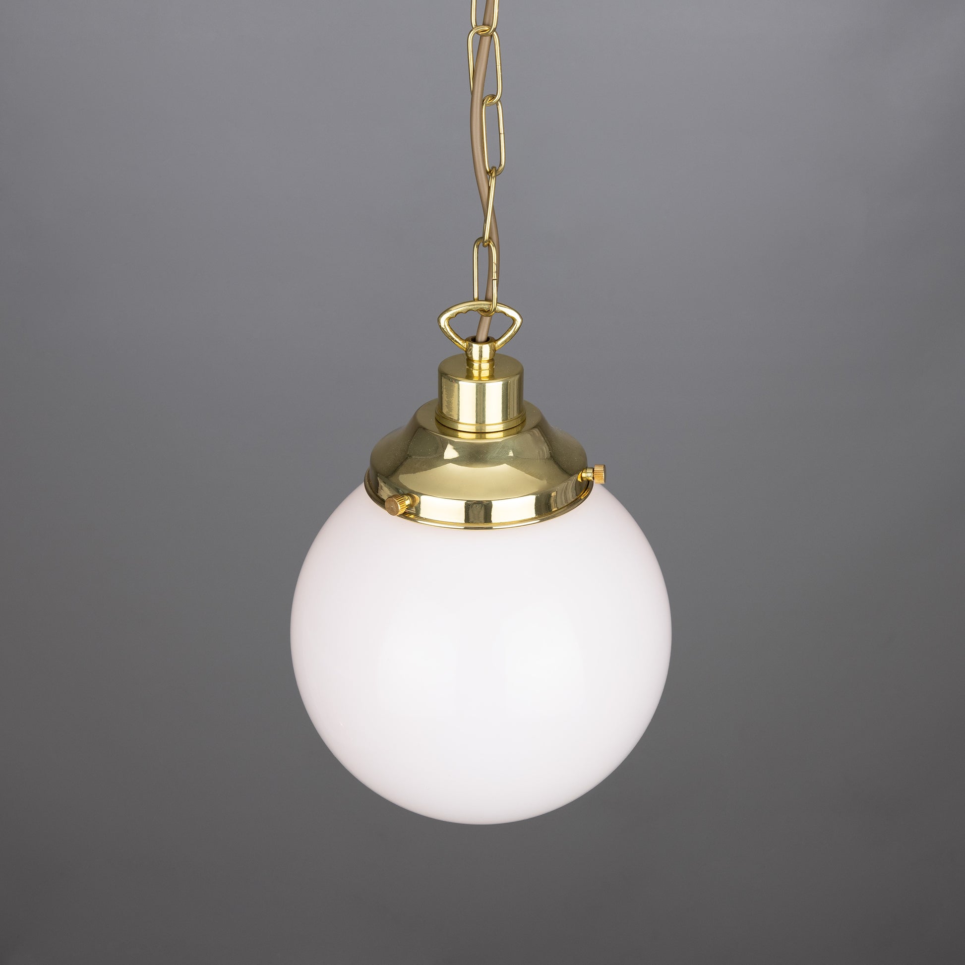 Suspended from a simple chain, this glass pendant light features a classic opal glass shade to cast a soft ambient light over a wide area.